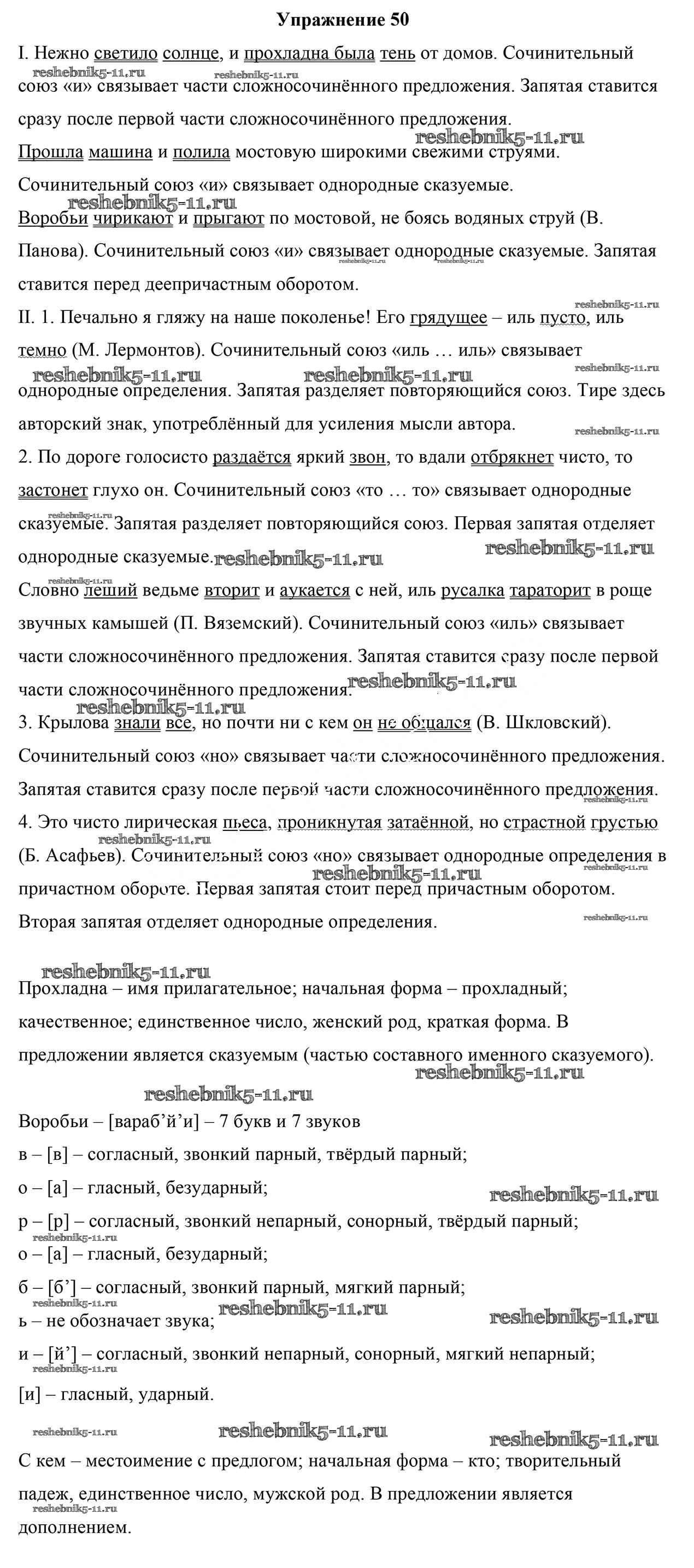 Готовая домашняя работа с ответами по Русскому языку за 9 класс Мурина, Литвинко, Долбик Учебник Национальный институт образования 2011 ФГОС - Упражнения 50