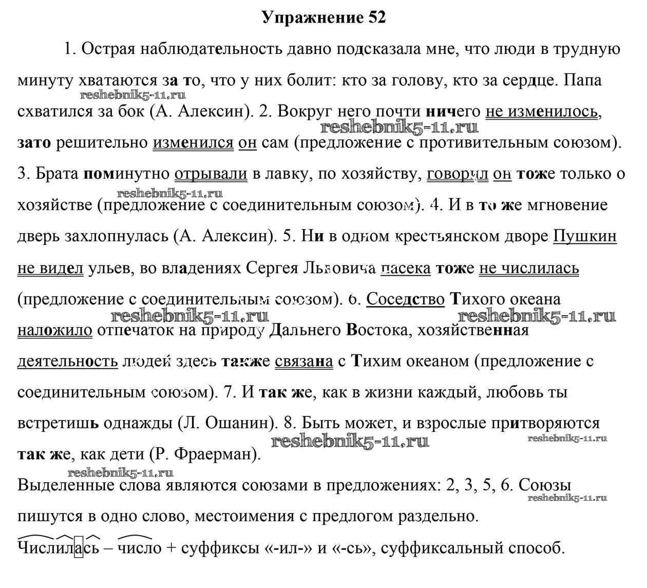 Готовая домашняя работа с ответами по Русскому языку за 9 класс Мурина, Литвинко, Долбик Учебник Национальный институт образования 2011 ФГОС - Упражнения 52