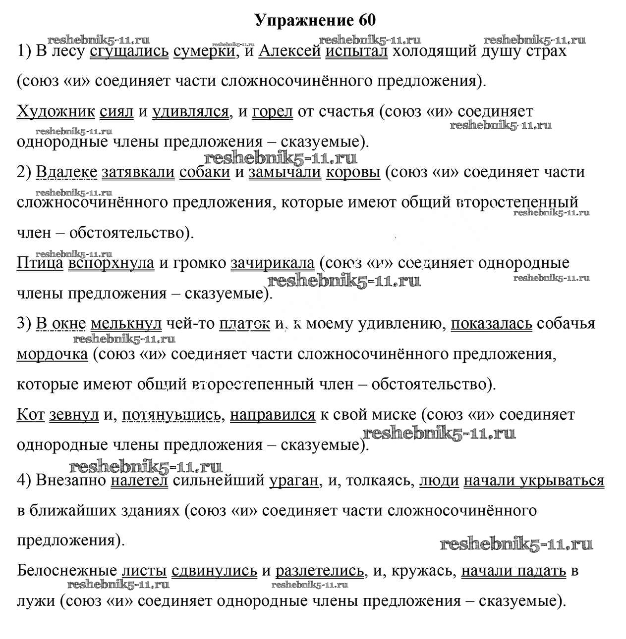 Готовая домашняя работа с ответами по Русскому языку за 9 класс Мурина, Литвинко, Долбик Учебник Национальный институт образования 2011 ФГОС - Упражнения 60