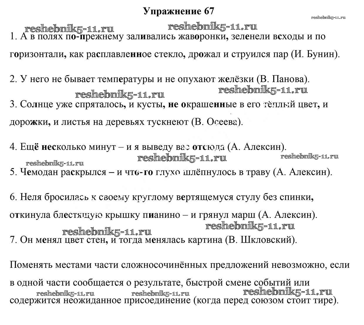 Готовая домашняя работа с ответами по Русскому языку за 9 класс Мурина, Литвинко, Долбик Учебник Национальный институт образования 2011 ФГОС - Упражнения 67
