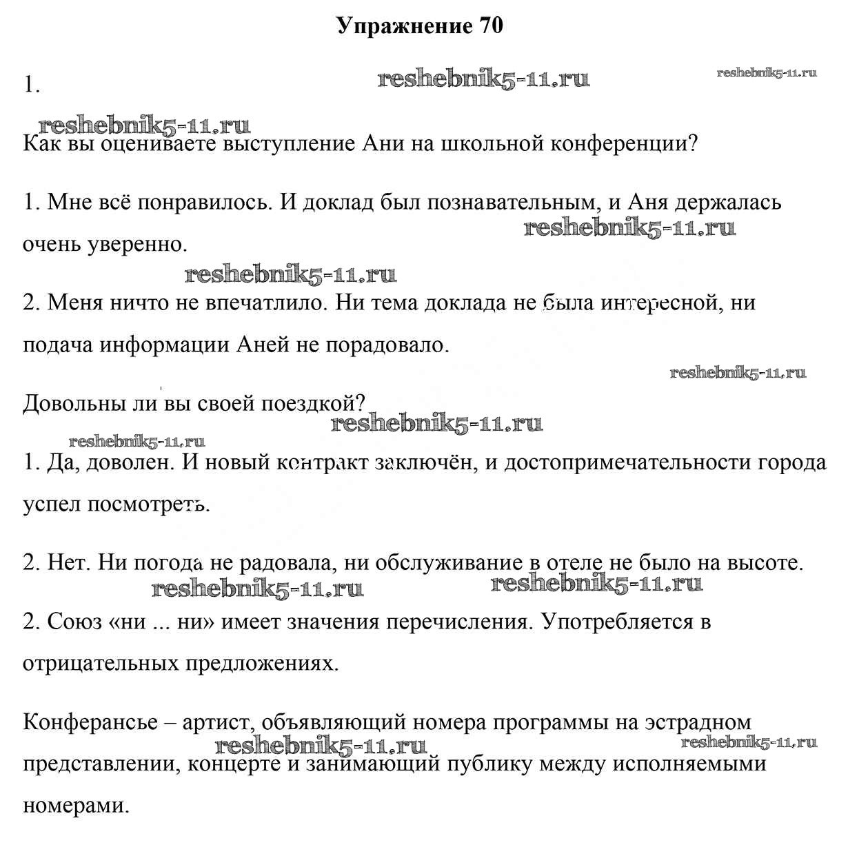 Готовая домашняя работа с ответами по Русскому языку за 9 класс Мурина, Литвинко, Долбик Учебник Национальный институт образования 2011 ФГОС - Упражнения 70