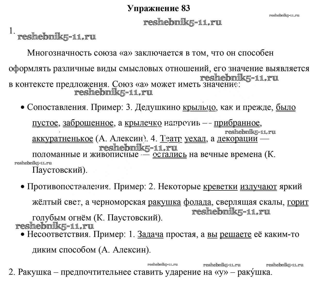 Готовая домашняя работа с ответами по Русскому языку за 9 класс Мурина, Литвинко, Долбик Учебник Национальный институт образования 2011 ФГОС - Упражнения 83