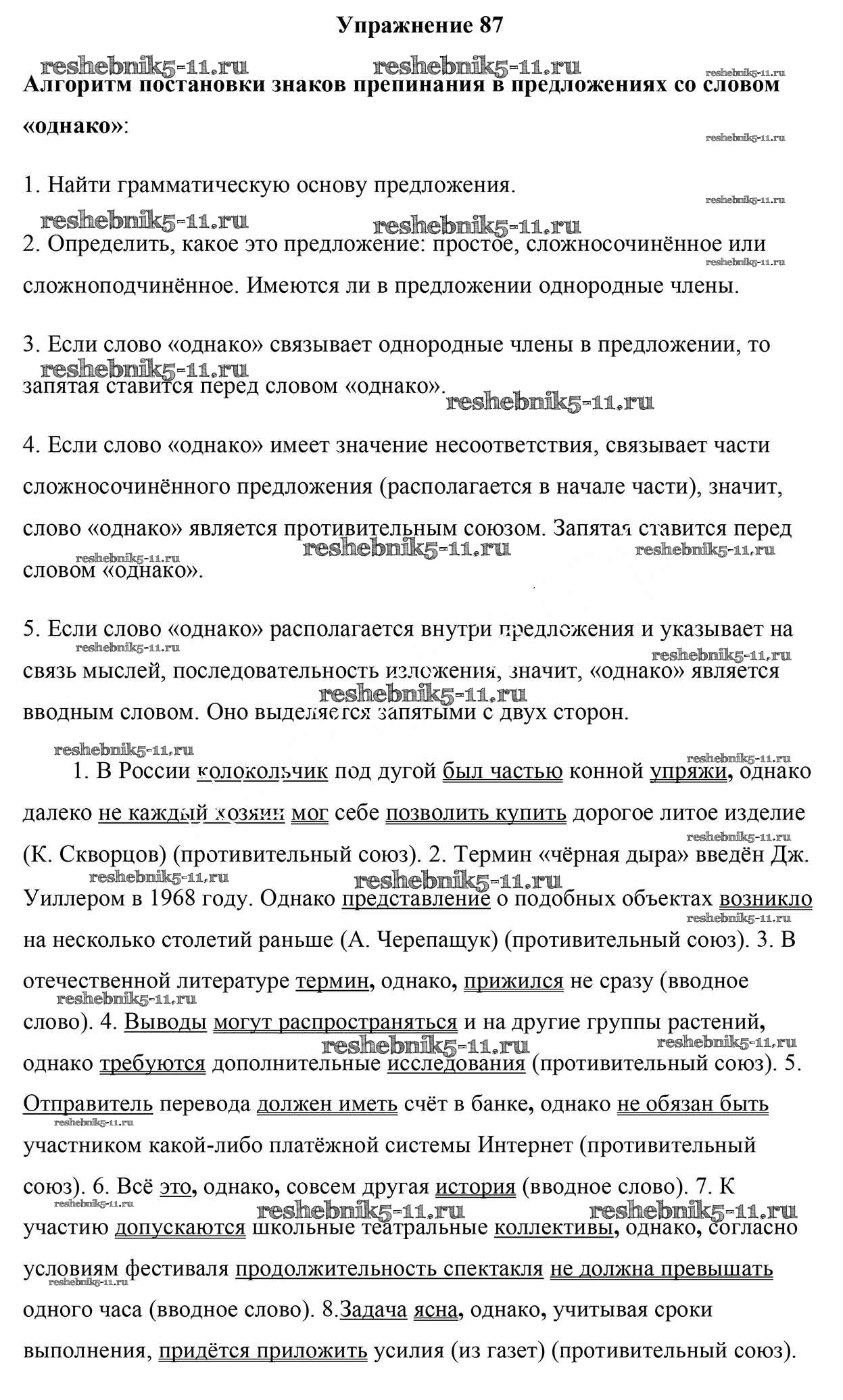 Готовая домашняя работа с ответами по Русскому языку за 9 класс Мурина, Литвинко, Долбик Учебник Национальный институт образования 2011 ФГОС - Упражнения 87