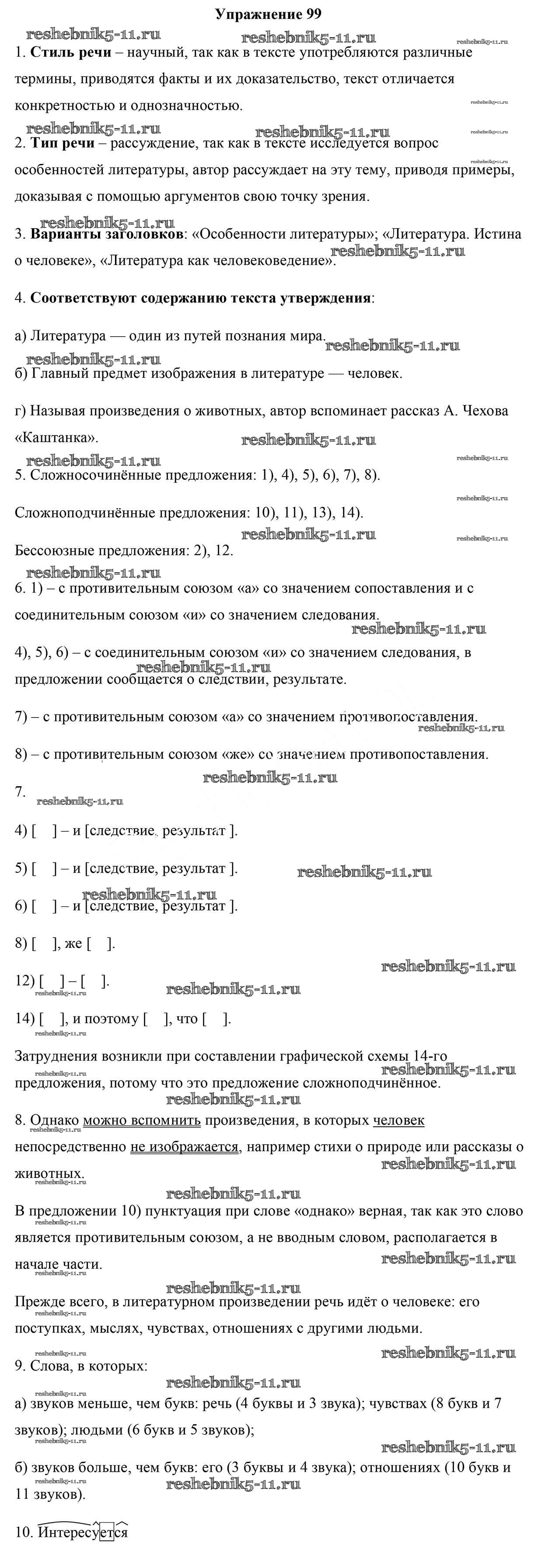 Готовая домашняя работа с ответами по Русскому языку за 9 класс Мурина, Литвинко, Долбик Учебник Национальный институт образования 2011 ФГОС - Упражнения 99