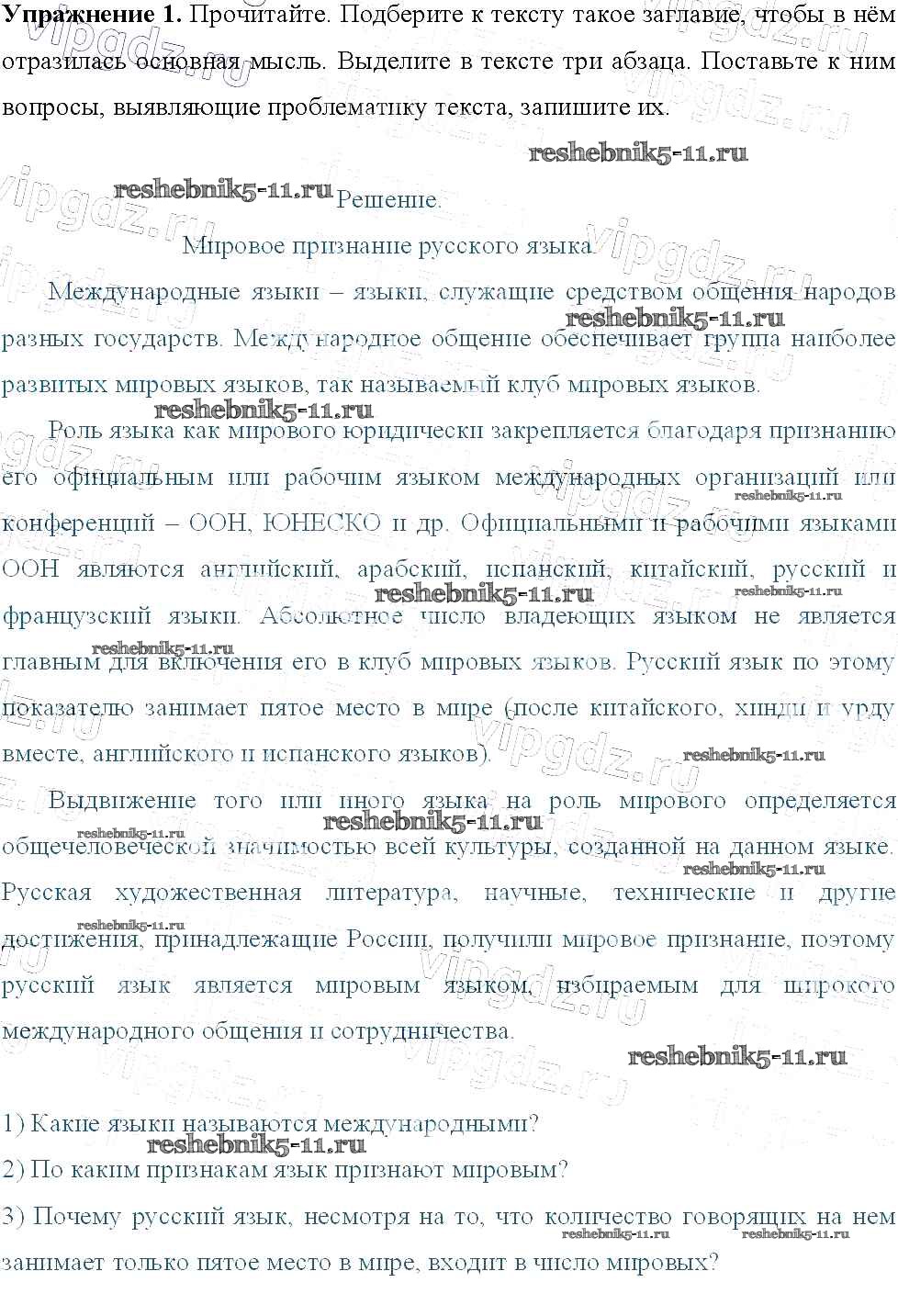 Готовая домашняя работа с ответами по Русскому языку за 9 класс Тростенцова, Ладыженская, Дейкина, Александрова Учебник Просвещение 2014 ФГОС - Упражнения 1
