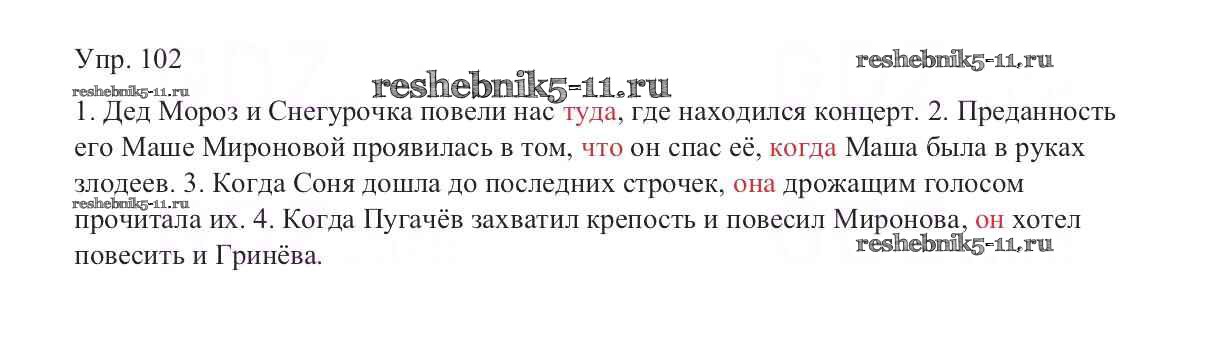 Готовая домашняя работа с ответами по Русскому языку за 9 класс Тростенцова, Ладыженская, Дейкина, Александрова Учебник Просвещение 2014 ФГОС - Упражнения 102