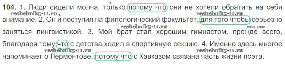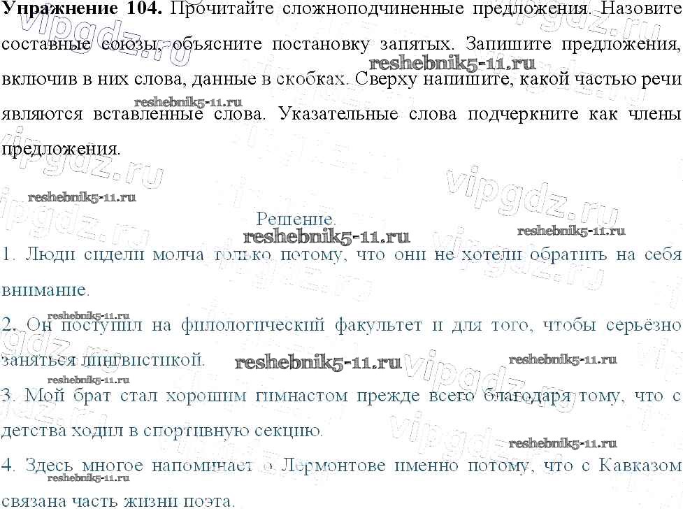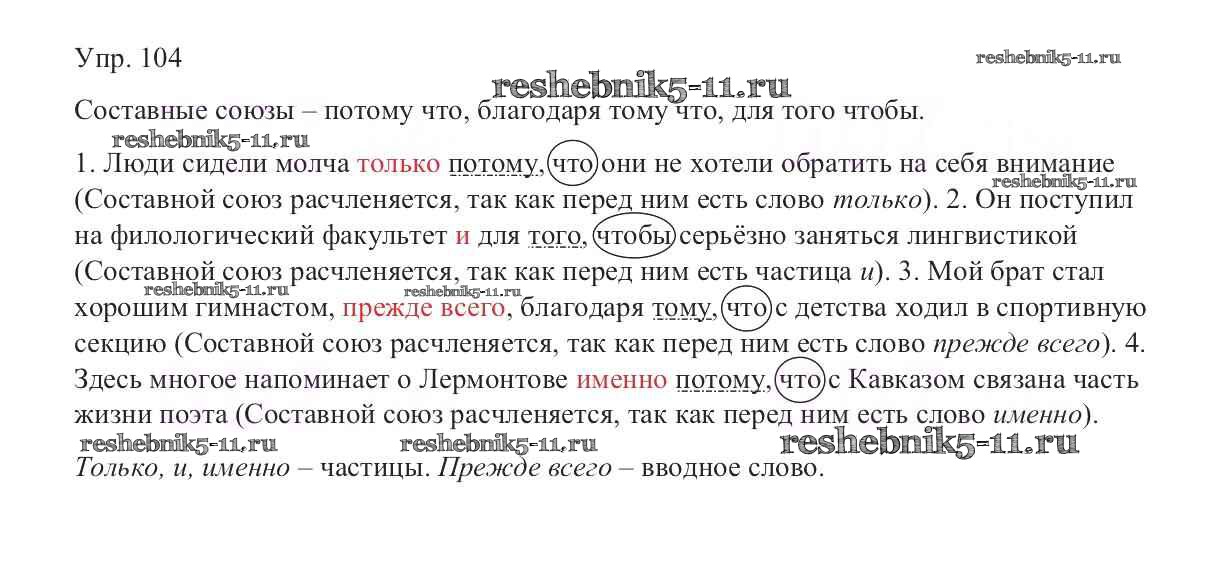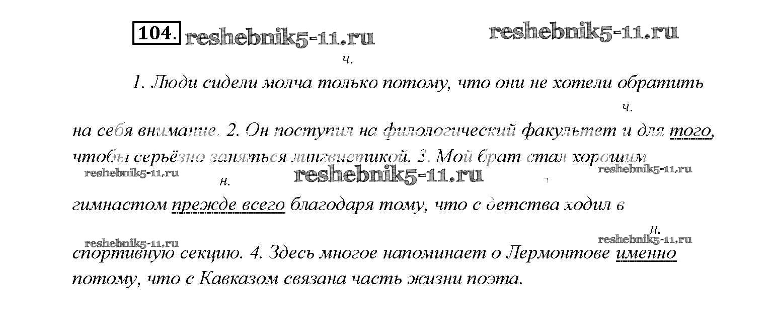 Готовая домашняя работа с ответами по Русскому языку за 9 класс Тростенцова, Ладыженская, Дейкина, Александрова Учебник Просвещение 2014 ФГОС - Упражнения 104