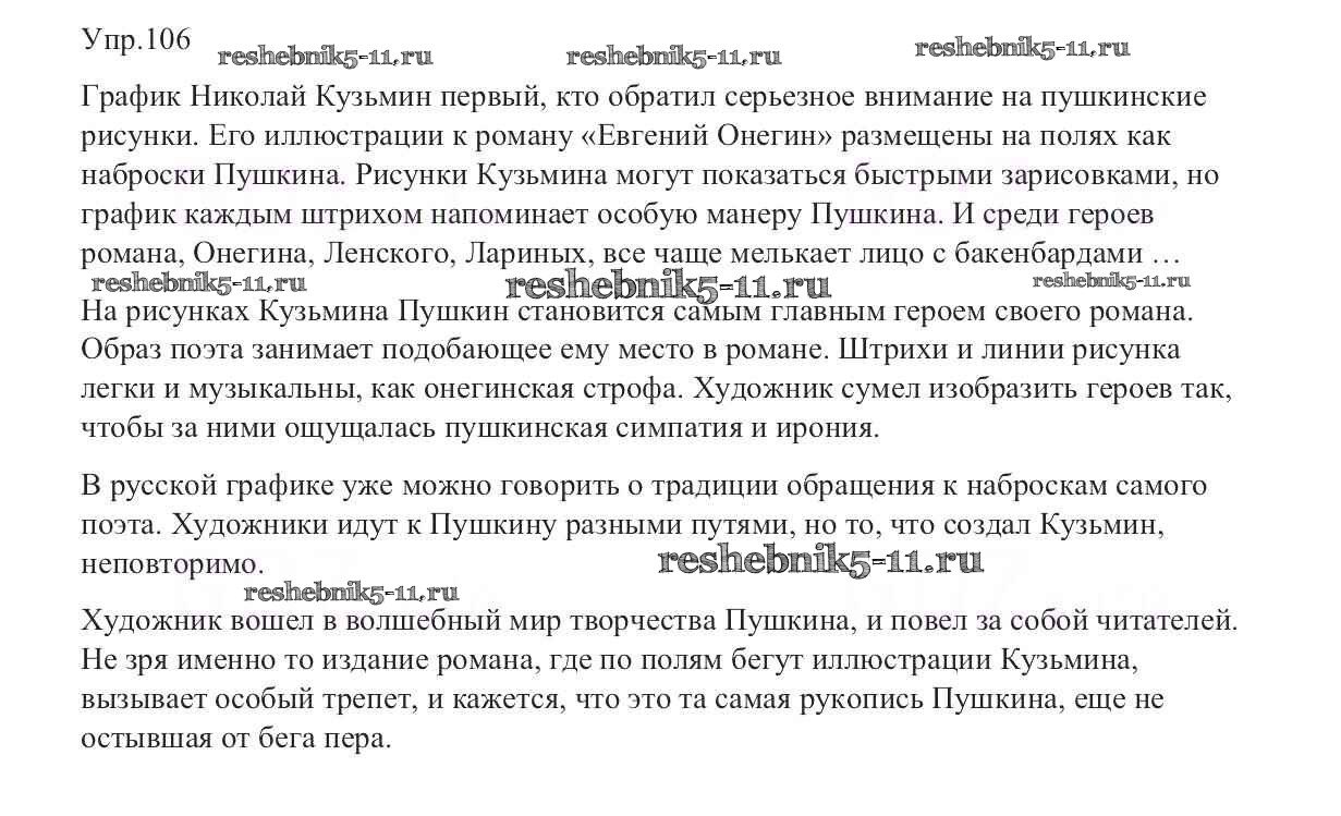 Готовая домашняя работа с ответами по Русскому языку за 9 класс Тростенцова, Ладыженская, Дейкина, Александрова Учебник Просвещение 2014 ФГОС - Упражнения 106