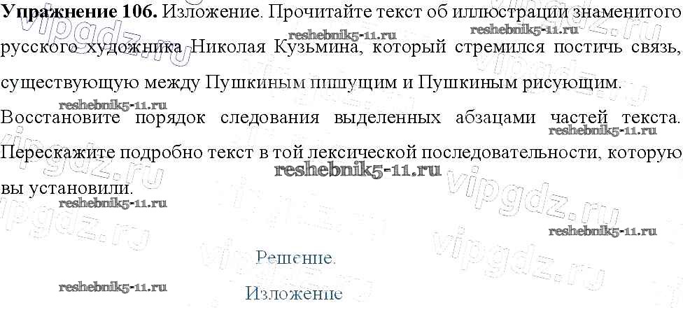 Русский язык за 9 класс Тростенцова Учебник Просвещение упражнение 106