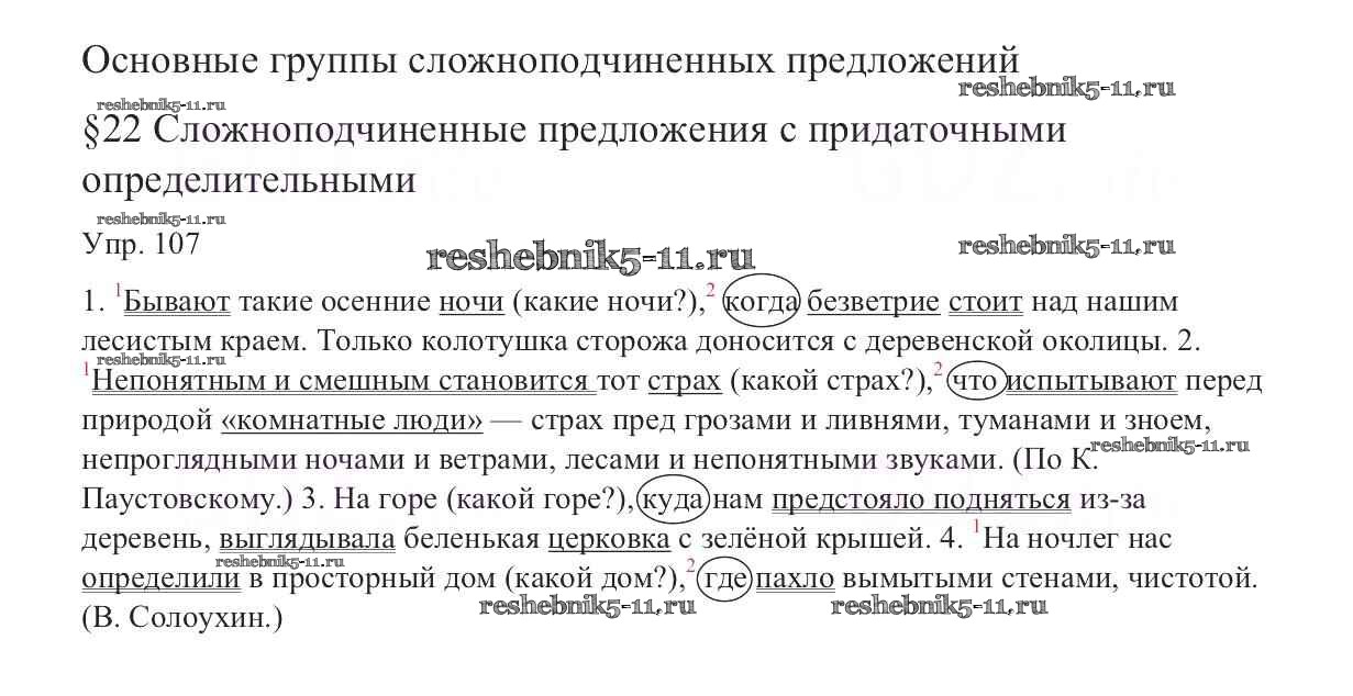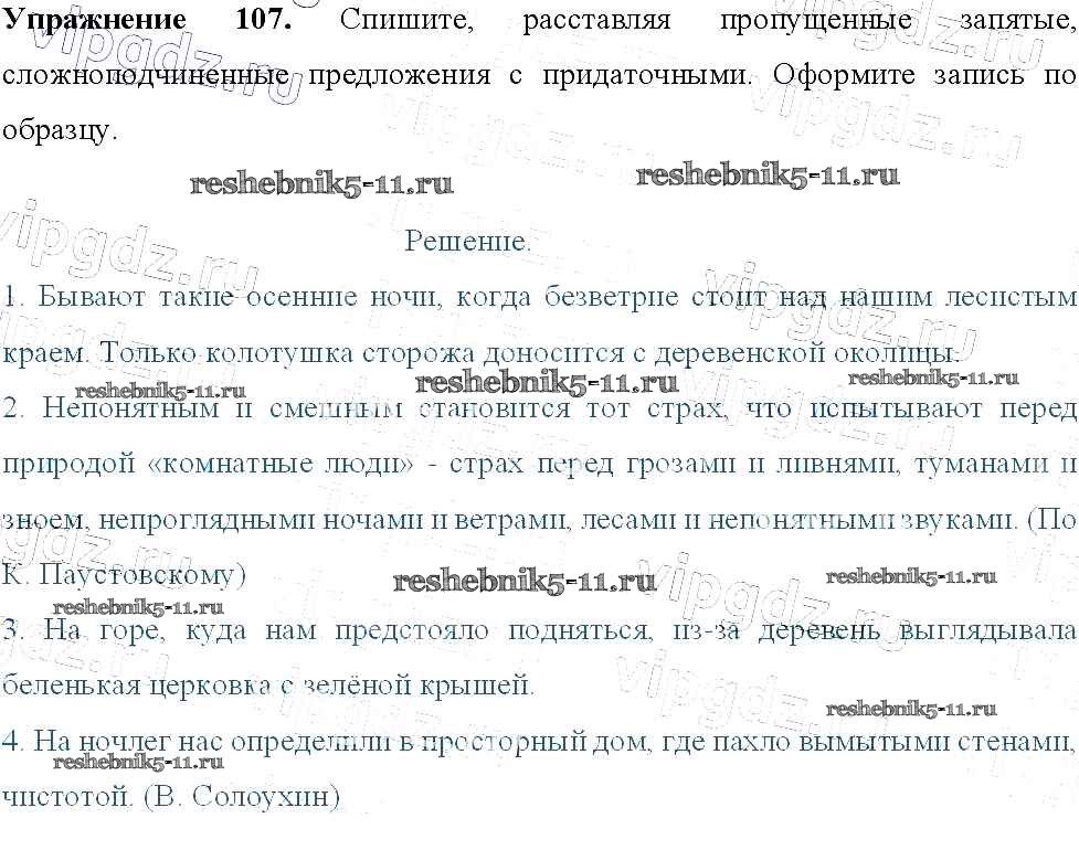 Готовая домашняя работа с ответами по Русскому языку за 9 класс Тростенцова, Ладыженская, Дейкина, Александрова Учебник Просвещение 2014 ФГОС - Упражнения 107