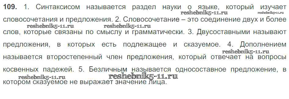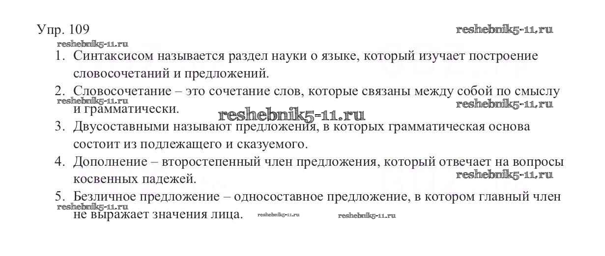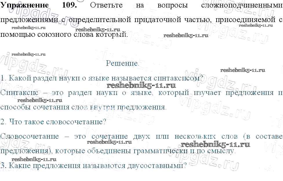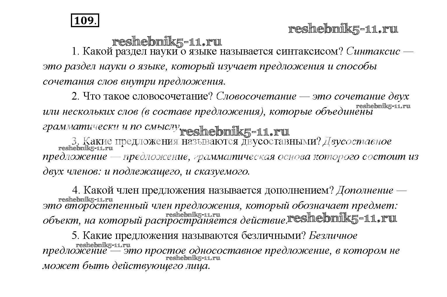 Готовая домашняя работа с ответами по Русскому языку за 9 класс Тростенцова, Ладыженская, Дейкина, Александрова Учебник Просвещение 2014 ФГОС - Упражнения 109