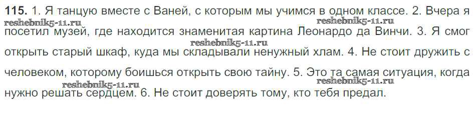 Готовая домашняя работа с ответами по Русскому языку за 9 класс Тростенцова, Ладыженская, Дейкина, Александрова Учебник Просвещение 2014 ФГОС - Упражнения 115