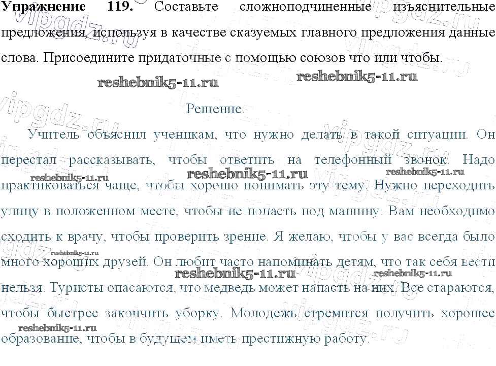 Готовая домашняя работа с ответами по Русскому языку за 9 класс Тростенцова, Ладыженская, Дейкина, Александрова Учебник Просвещение 2014 ФГОС - Упражнения 119