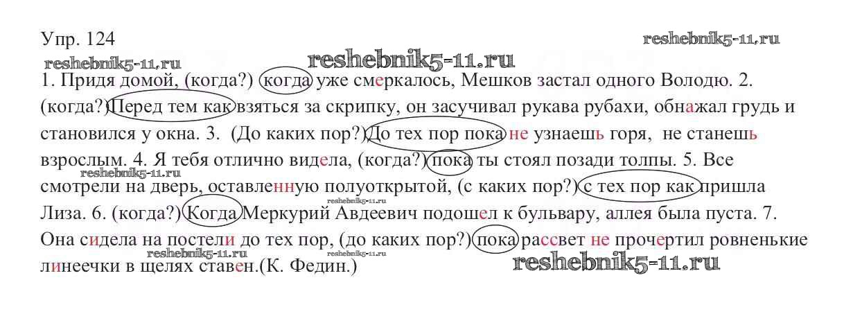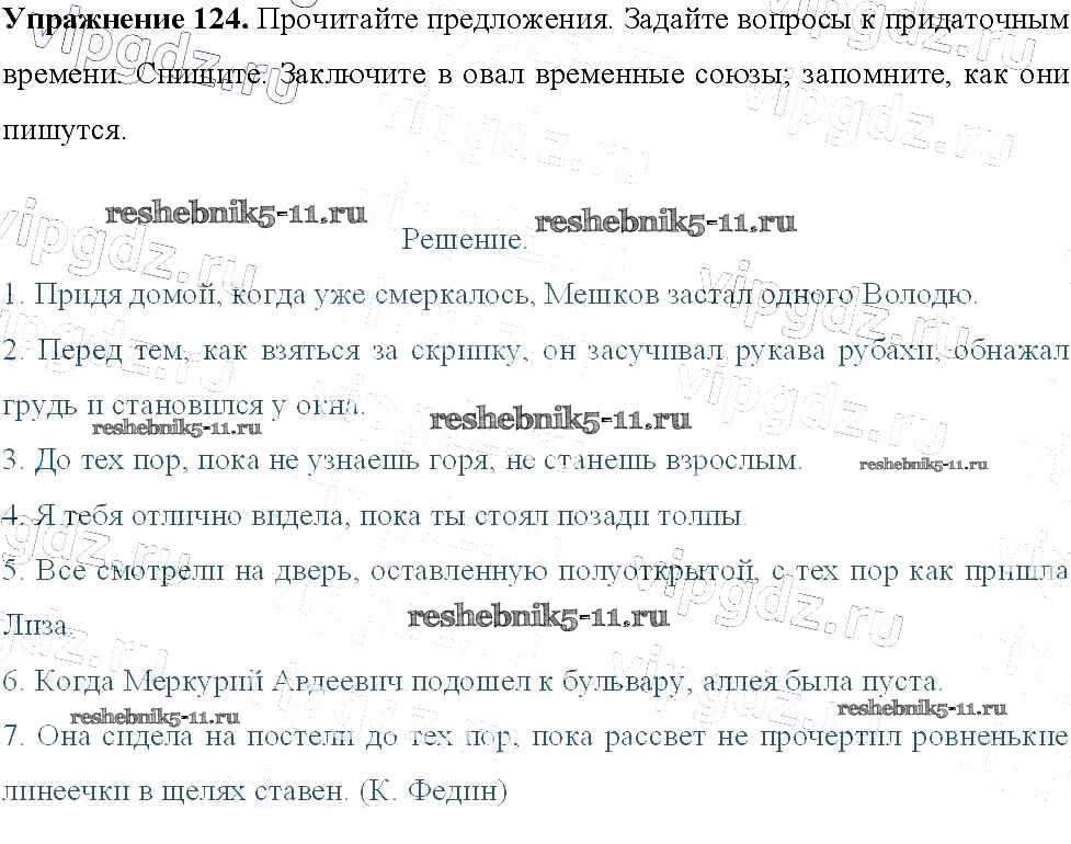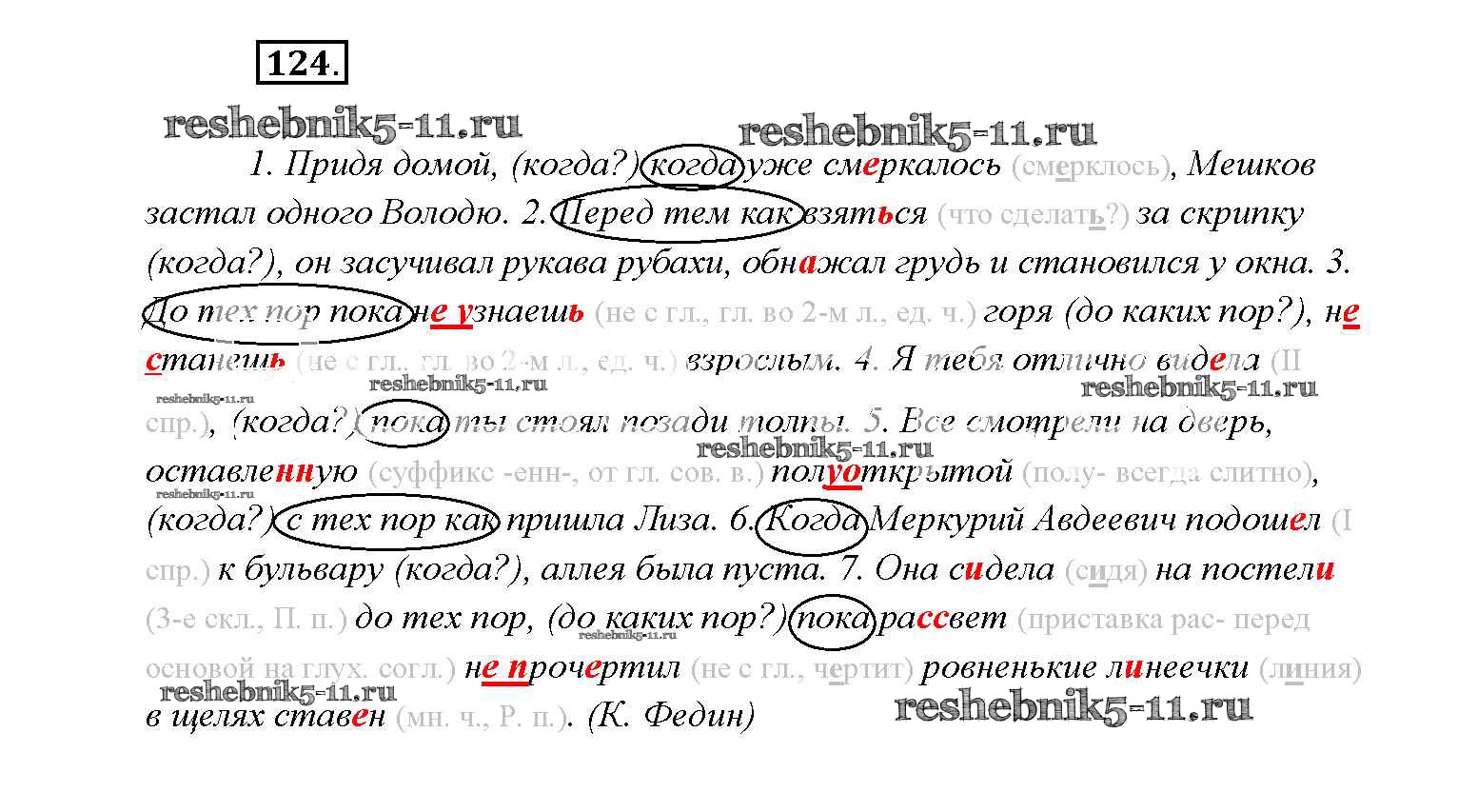 Готовая домашняя работа с ответами по Русскому языку за 9 класс Тростенцова, Ладыженская, Дейкина, Александрова Учебник Просвещение 2014 ФГОС - Упражнения 124