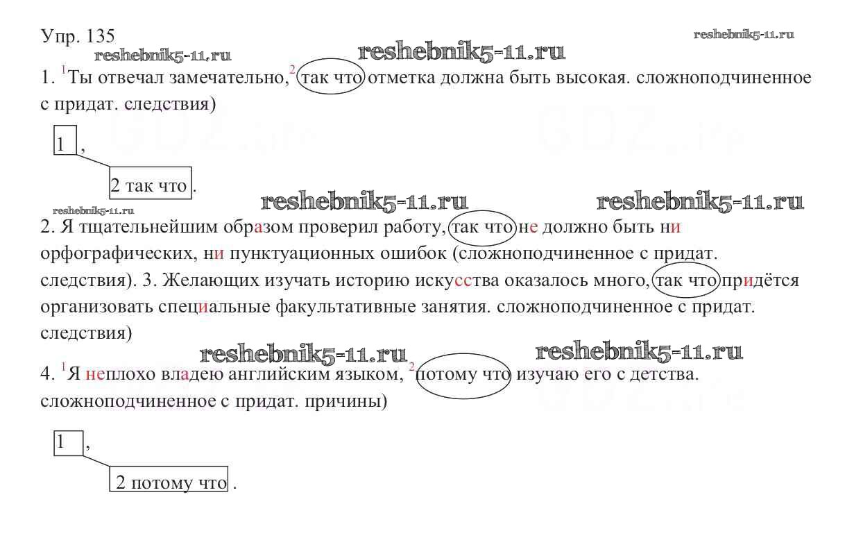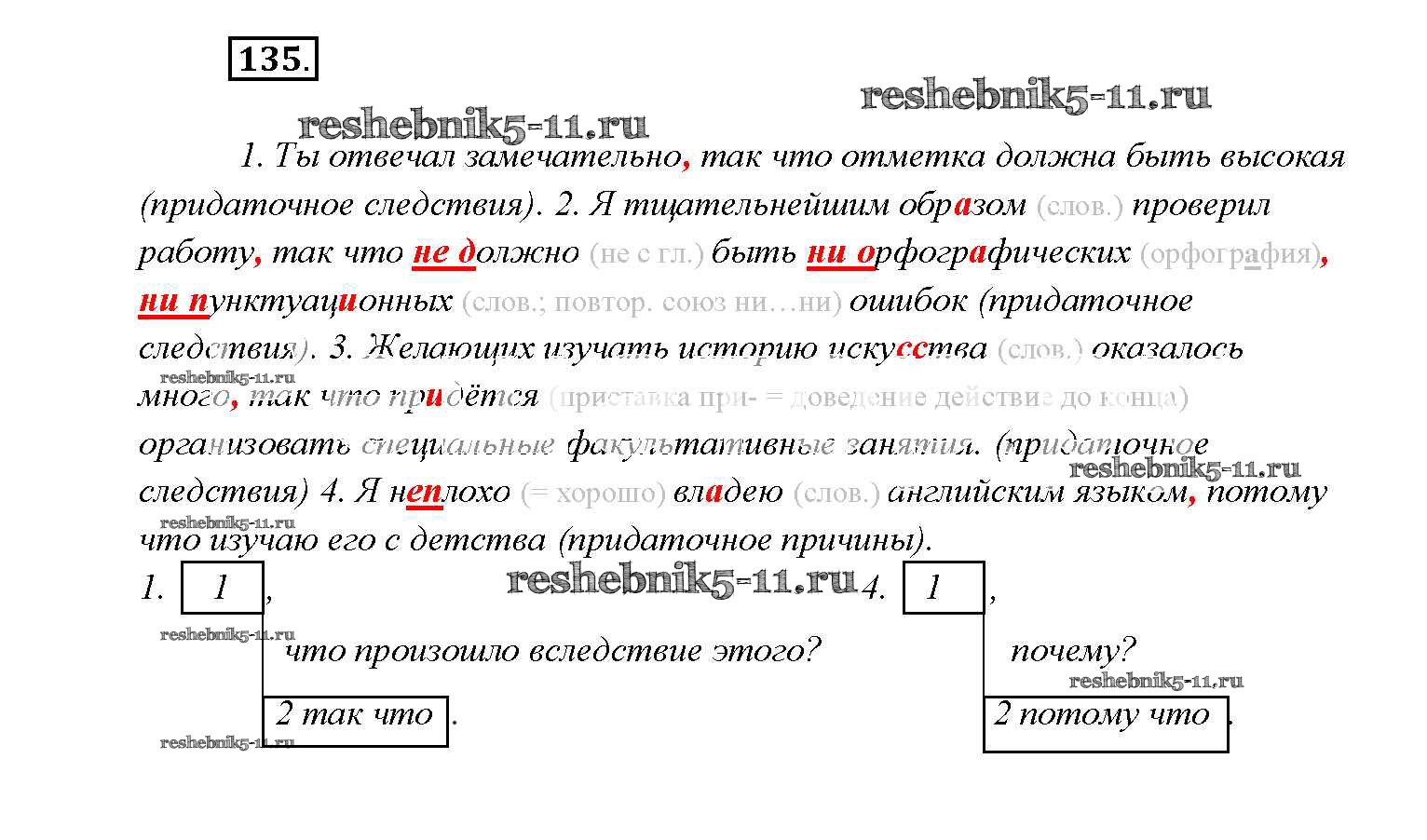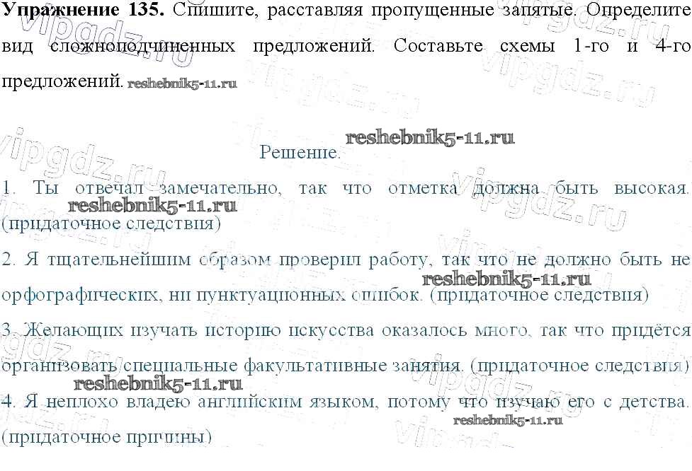 Готовая домашняя работа с ответами по Русскому языку за 9 класс Тростенцова, Ладыженская, Дейкина, Александрова Учебник Просвещение 2014 ФГОС - Упражнения 135