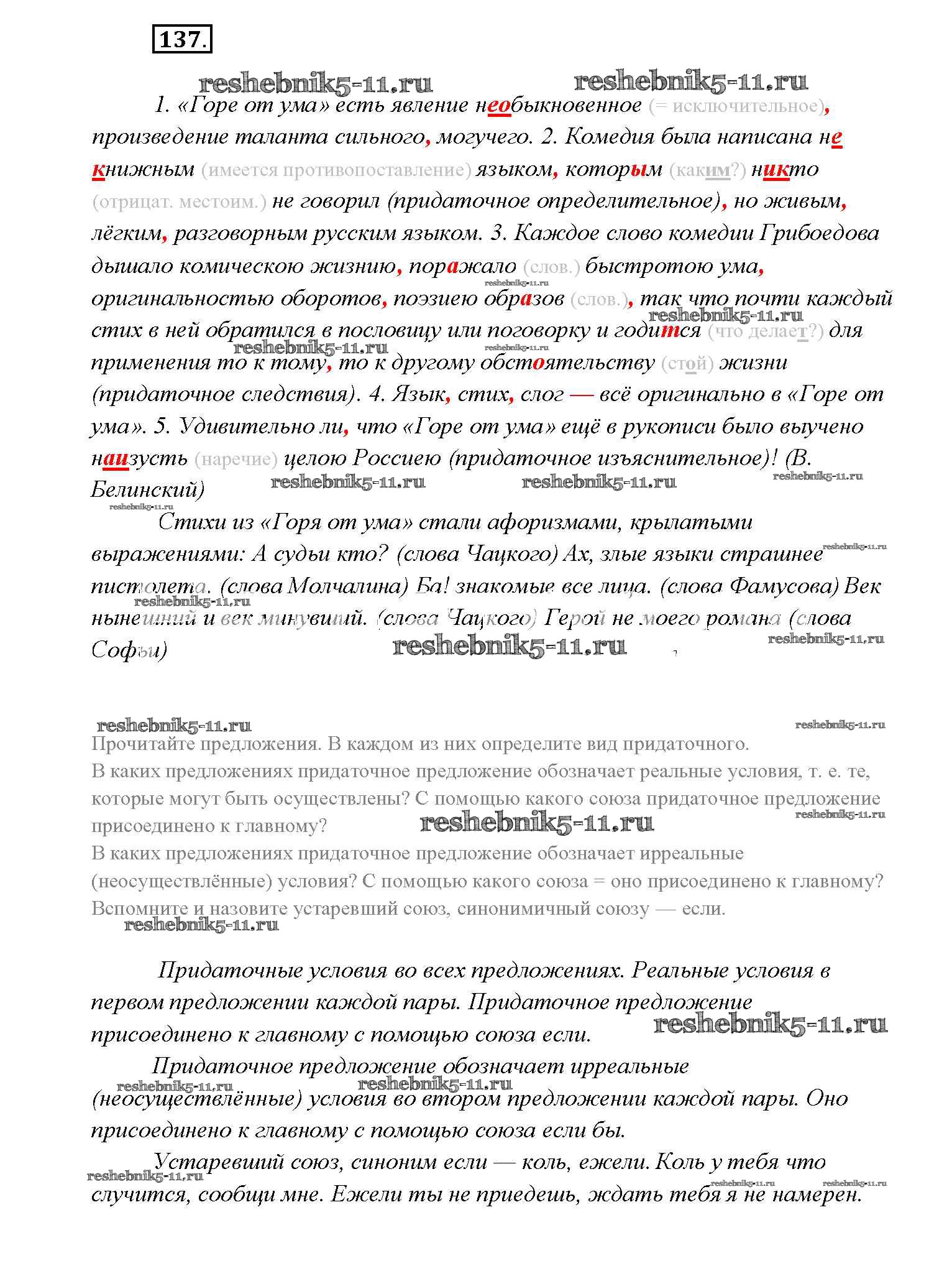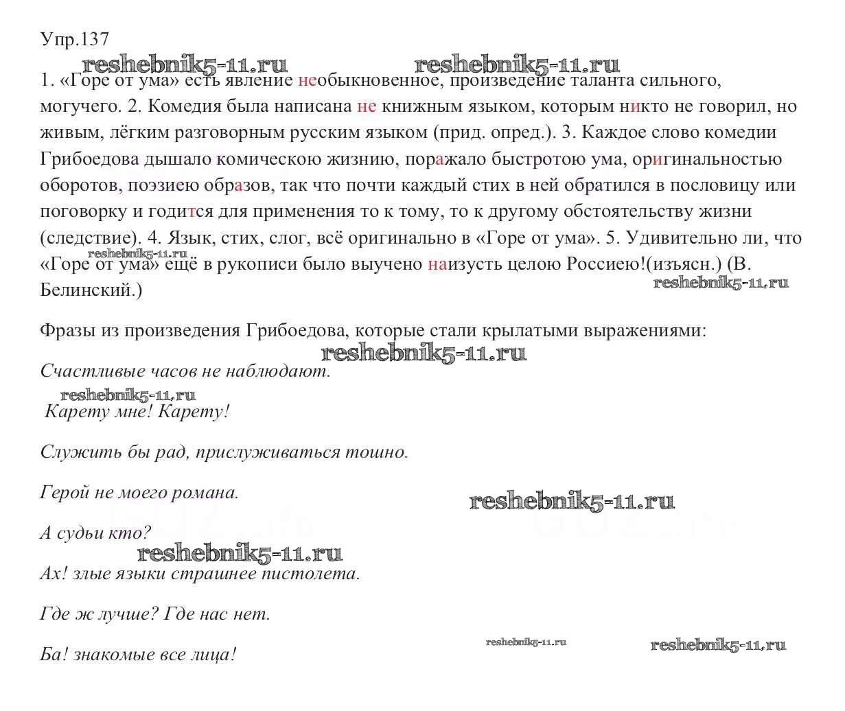 Готовая домашняя работа с ответами по Русскому языку за 9 класс Тростенцова, Ладыженская, Дейкина, Александрова Учебник Просвещение 2014 ФГОС - Упражнения 137