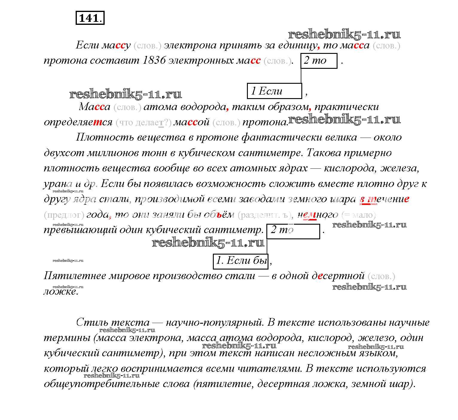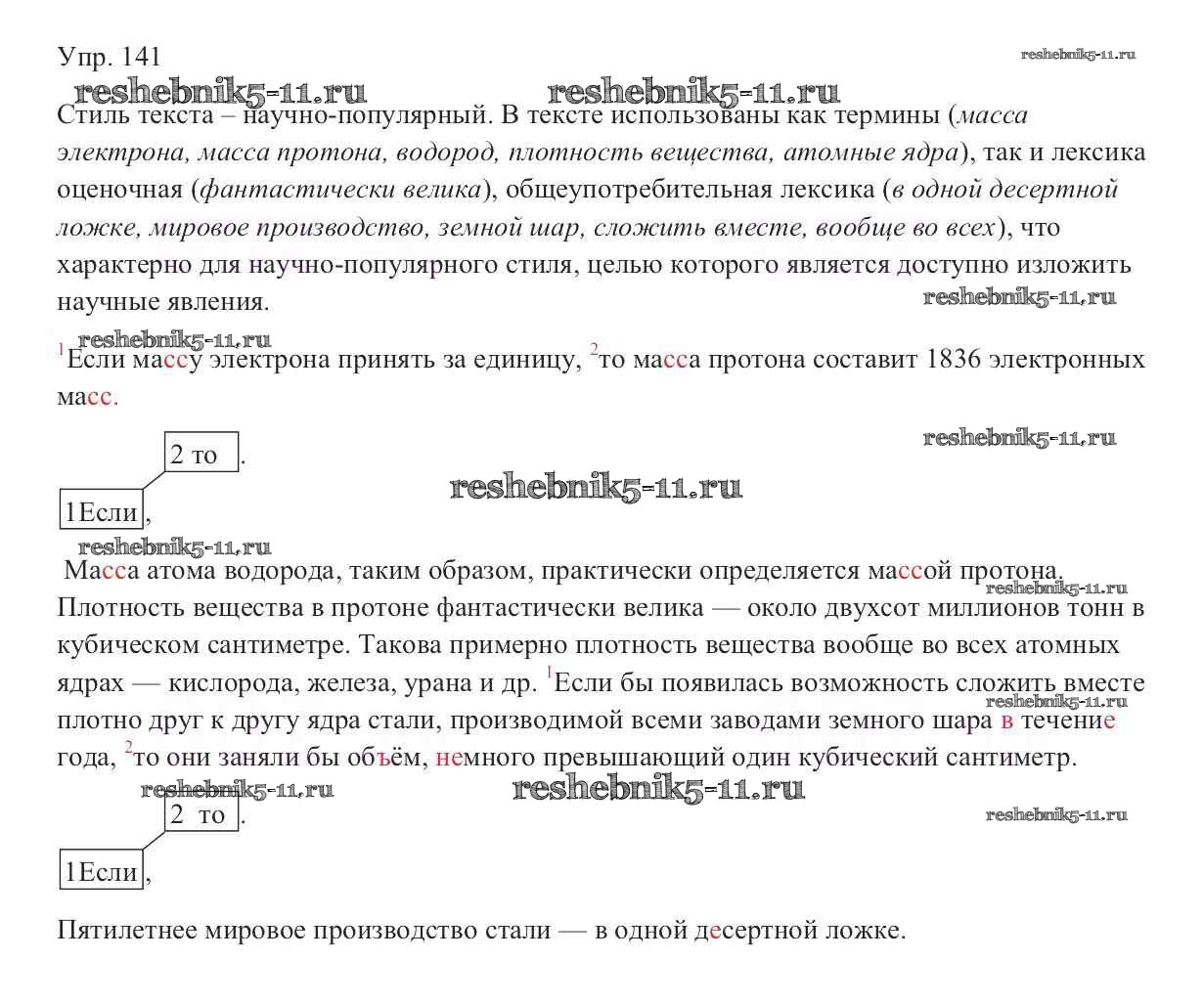 Готовая домашняя работа с ответами по Русскому языку за 9 класс Тростенцова, Ладыженская, Дейкина, Александрова Учебник Просвещение 2014 ФГОС - Упражнения 141
