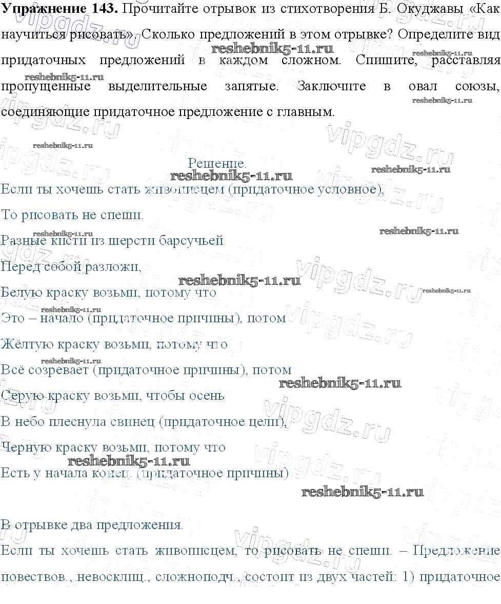 Готовая домашняя работа с ответами по Русскому языку за 9 класс Тростенцова, Ладыженская, Дейкина, Александрова Учебник Просвещение 2014 ФГОС - Упражнения 143