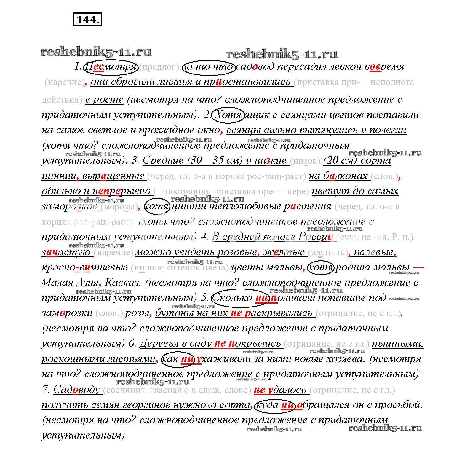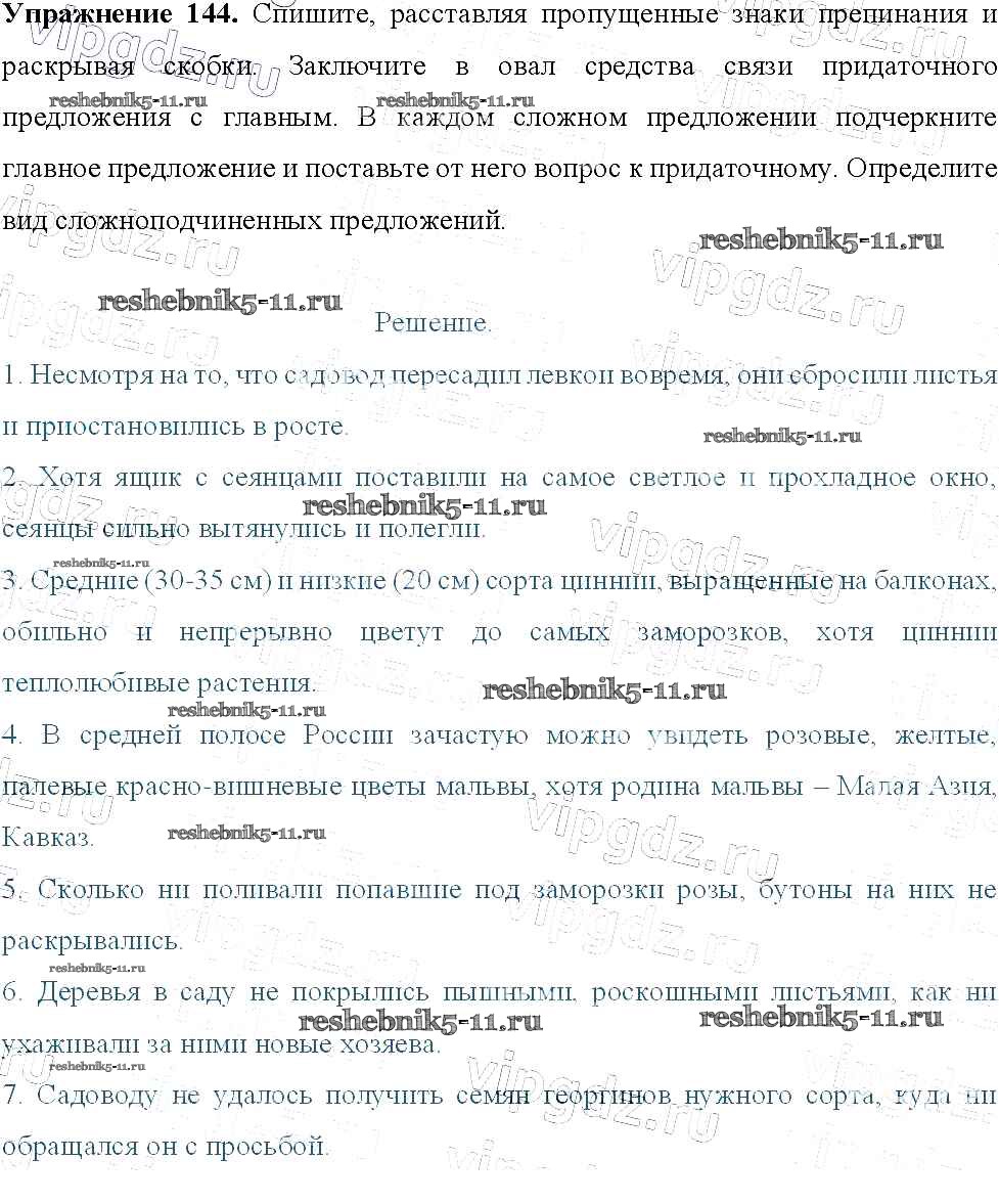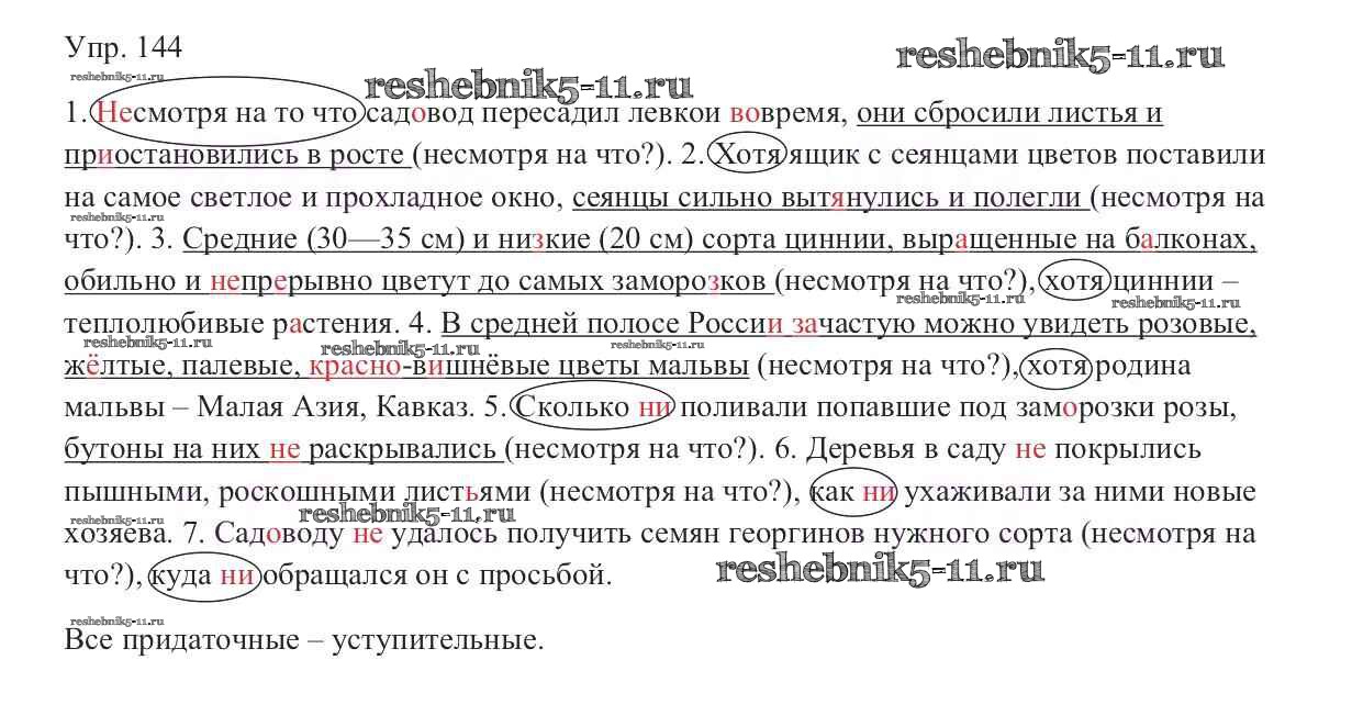 Готовая домашняя работа с ответами по Русскому языку за 9 класс Тростенцова, Ладыженская, Дейкина, Александрова Учебник Просвещение 2014 ФГОС - Упражнения 144