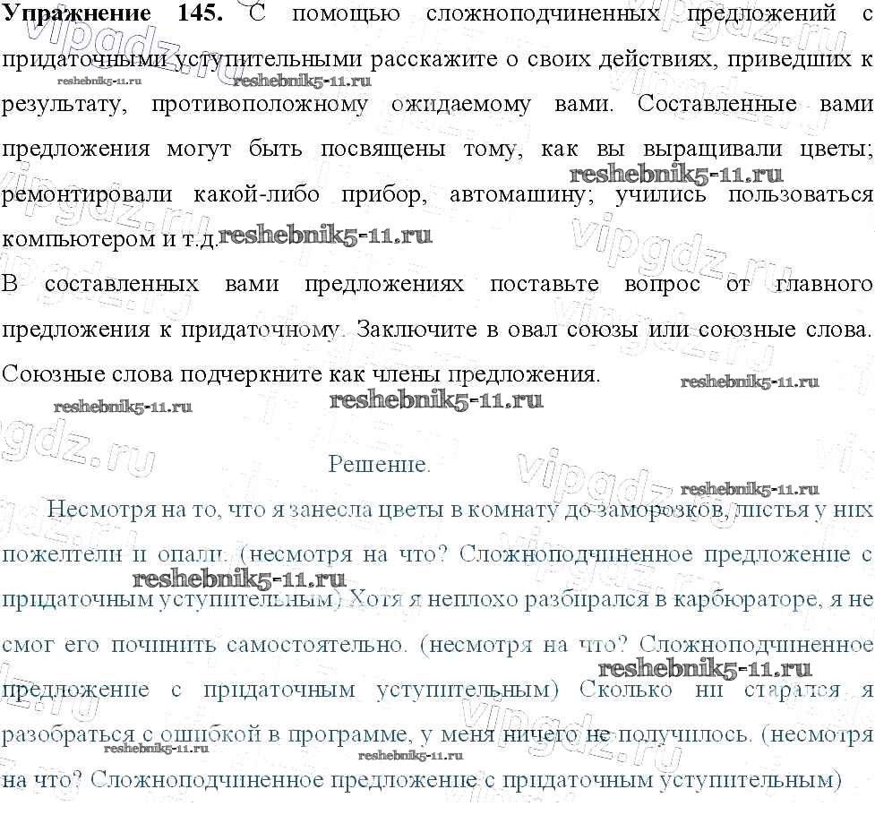 Готовая домашняя работа с ответами по Русскому языку за 9 класс Тростенцова, Ладыженская, Дейкина, Александрова Учебник Просвещение 2014 ФГОС - Упражнения 145
