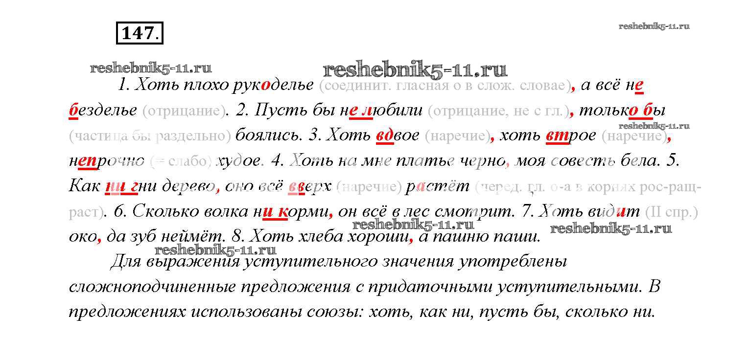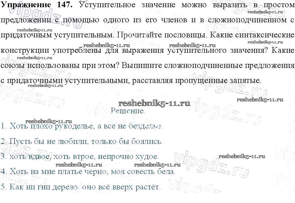 Готовая домашняя работа с ответами по Русскому языку за 9 класс Тростенцова, Ладыженская, Дейкина, Александрова Учебник Просвещение 2014 ФГОС - Упражнения 147