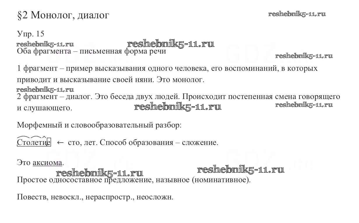 Готовая домашняя работа с ответами по Русскому языку за 9 класс Тростенцова, Ладыженская, Дейкина, Александрова Учебник Просвещение 2014 ФГОС - Упражнения 15