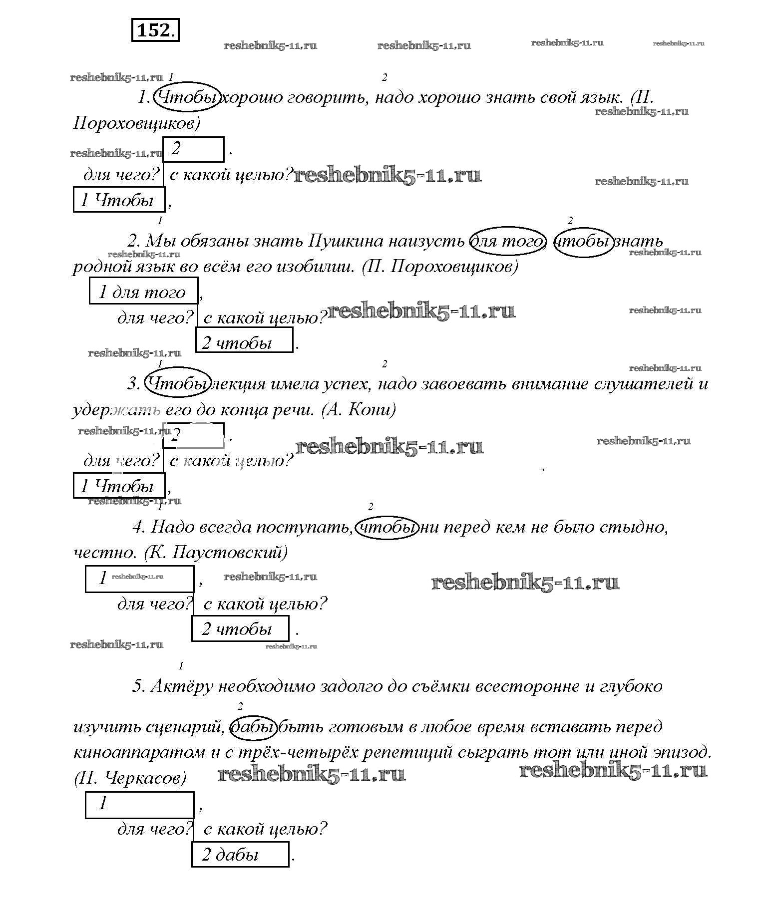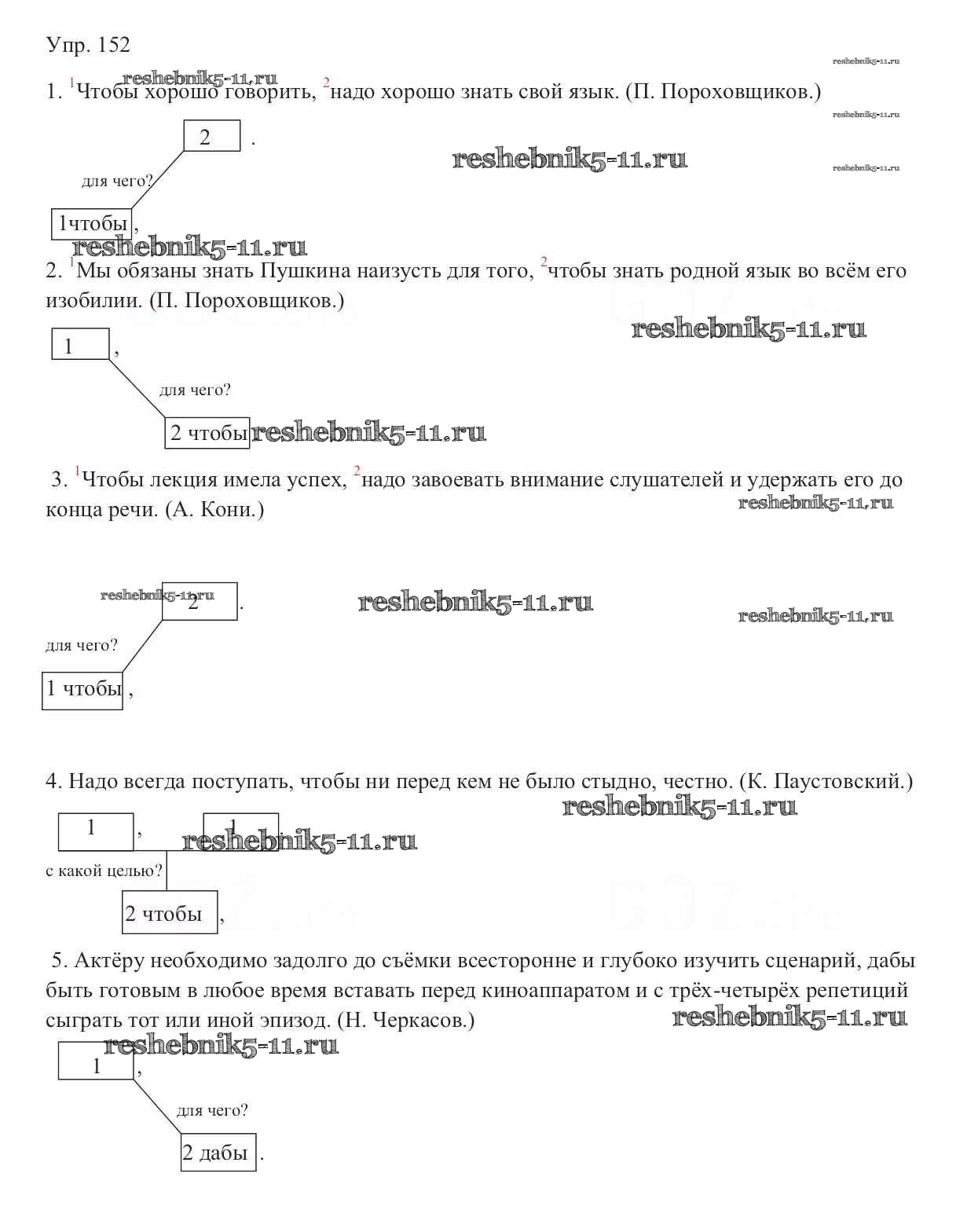Готовая домашняя работа с ответами по Русскому языку за 9 класс Тростенцова, Ладыженская, Дейкина, Александрова Учебник Просвещение 2014 ФГОС - Упражнения 152