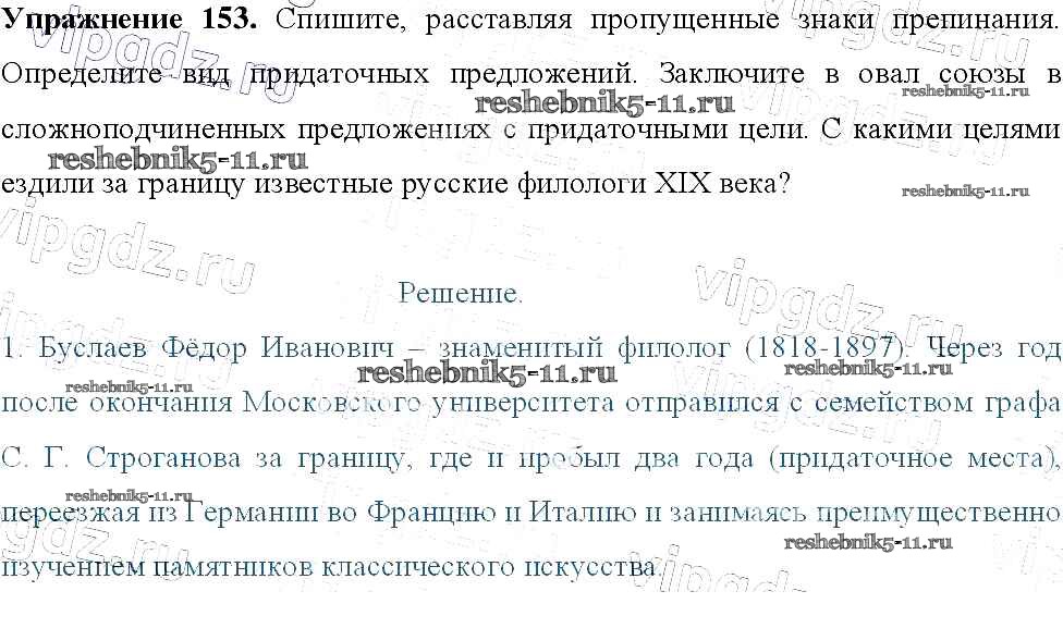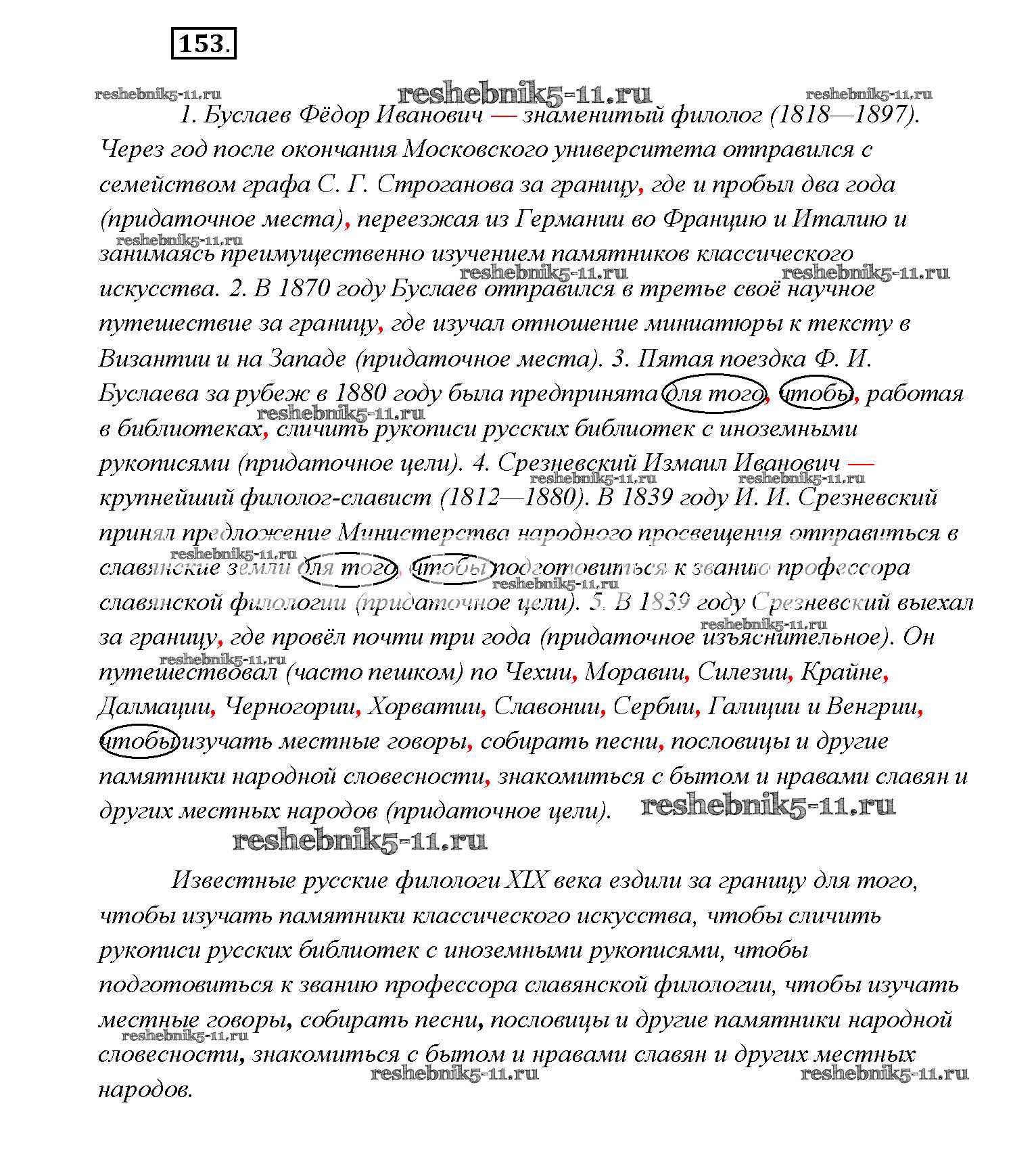 Готовая домашняя работа с ответами по Русскому языку за 9 класс Тростенцова, Ладыженская, Дейкина, Александрова Учебник Просвещение 2014 ФГОС - Упражнения 153