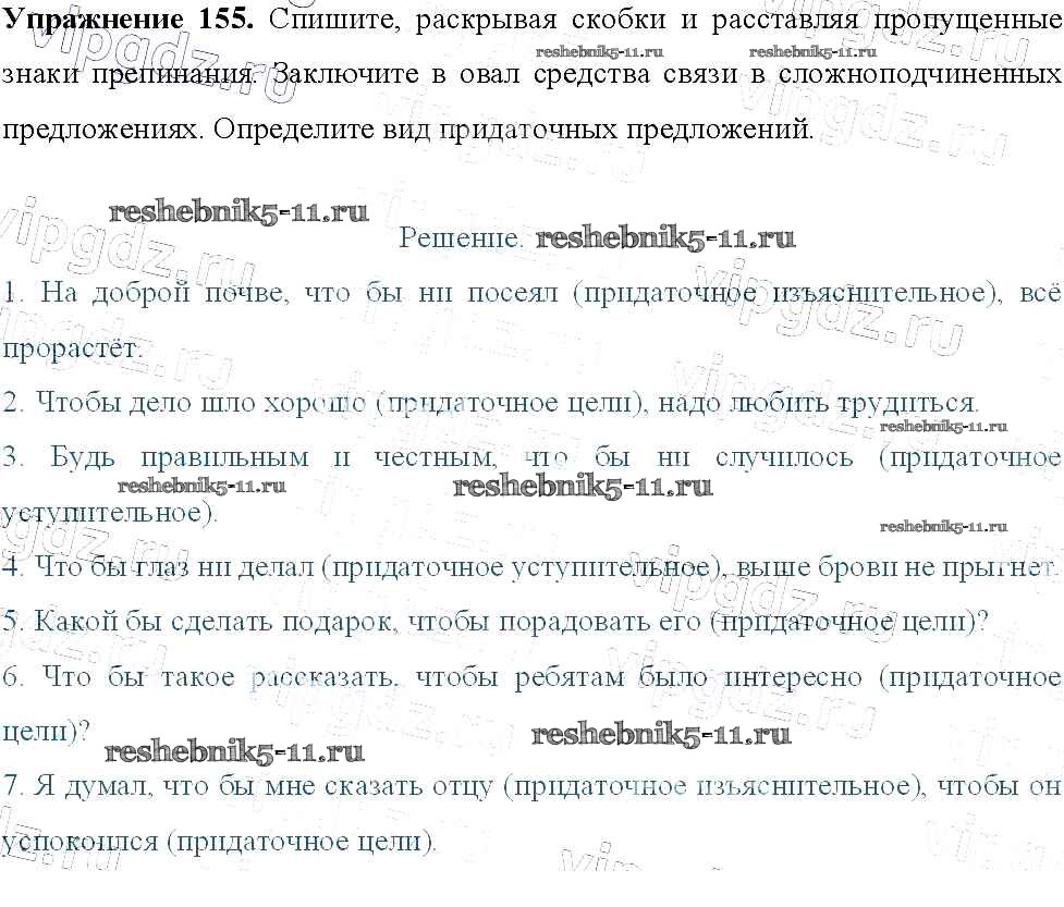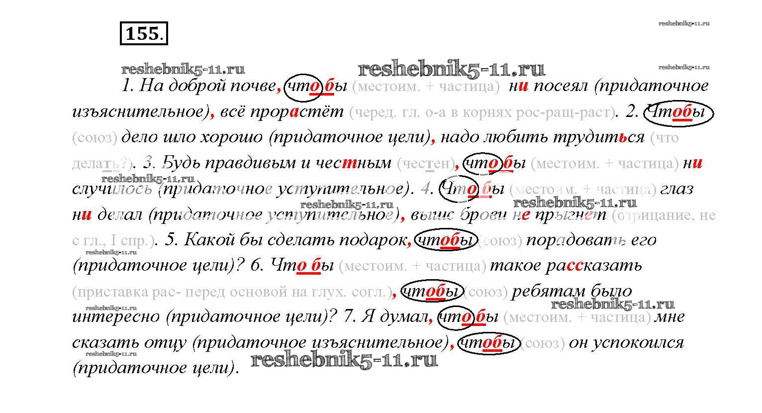 Готовая домашняя работа с ответами по Русскому языку за 9 класс Тростенцова, Ладыженская, Дейкина, Александрова Учебник Просвещение 2014 ФГОС - Упражнения 155