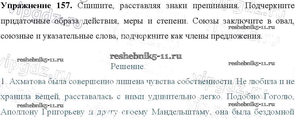 Готовая домашняя работа с ответами по Русскому языку за 9 класс Тростенцова, Ладыженская, Дейкина, Александрова Учебник Просвещение 2014 ФГОС - Упражнения 157