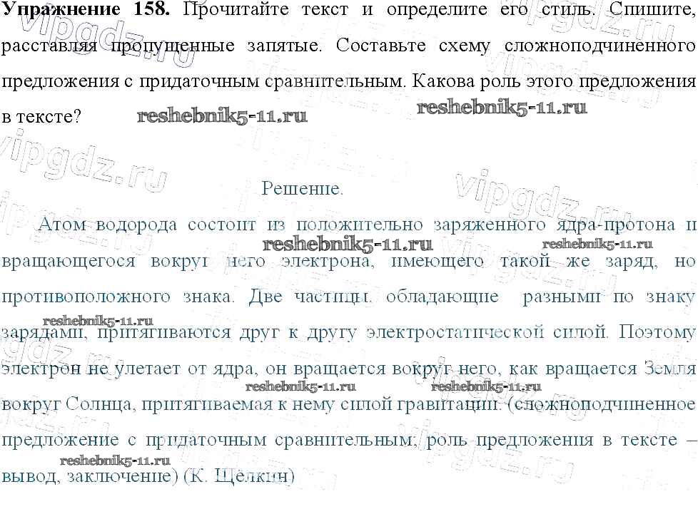Готовая домашняя работа с ответами по Русскому языку за 9 класс Тростенцова, Ладыженская, Дейкина, Александрова Учебник Просвещение 2014 ФГОС - Упражнения 158