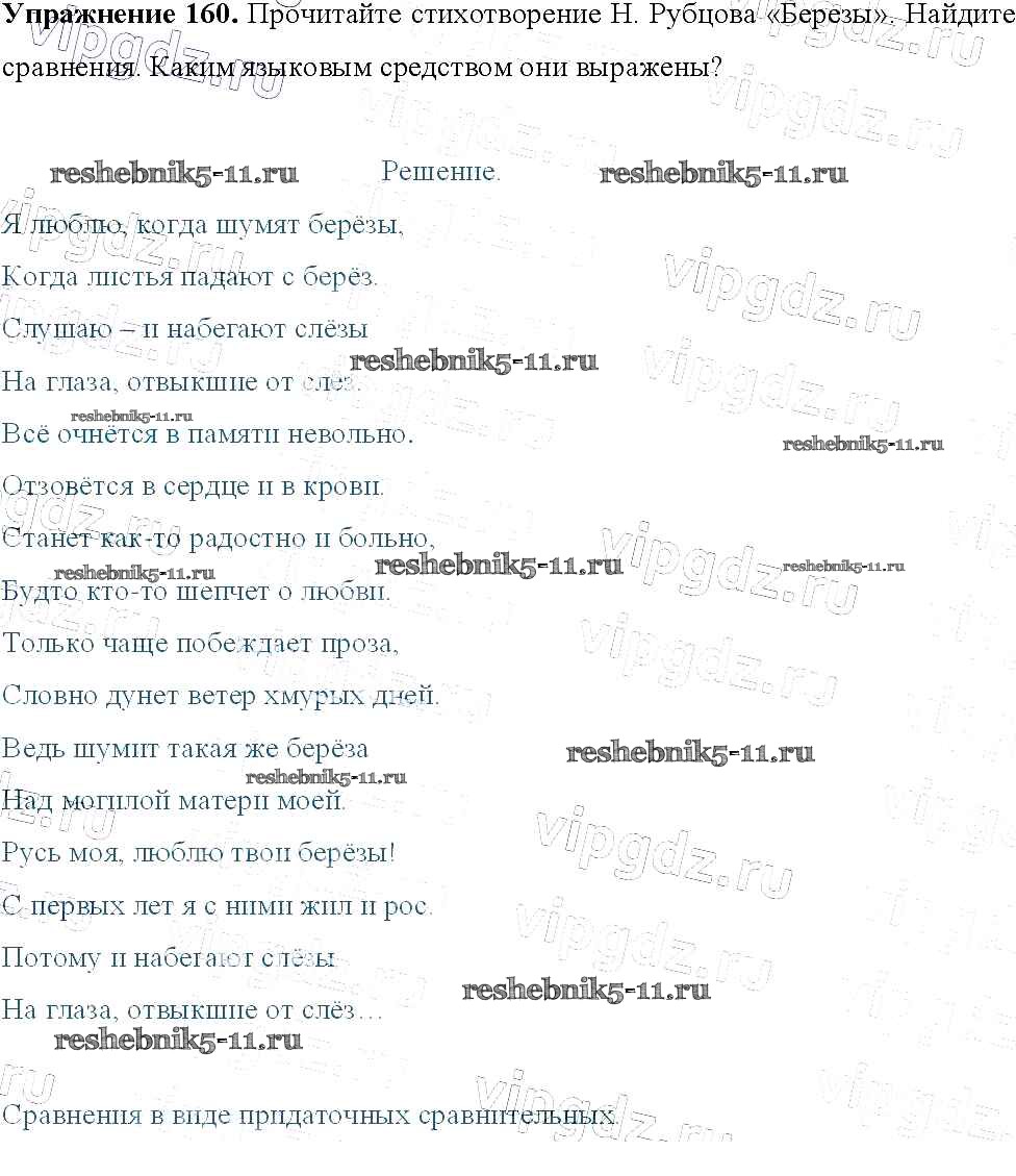 Готовая домашняя работа с ответами по Русскому языку за 9 класс Тростенцова, Ладыженская, Дейкина, Александрова Учебник Просвещение 2014 ФГОС - Упражнения 160