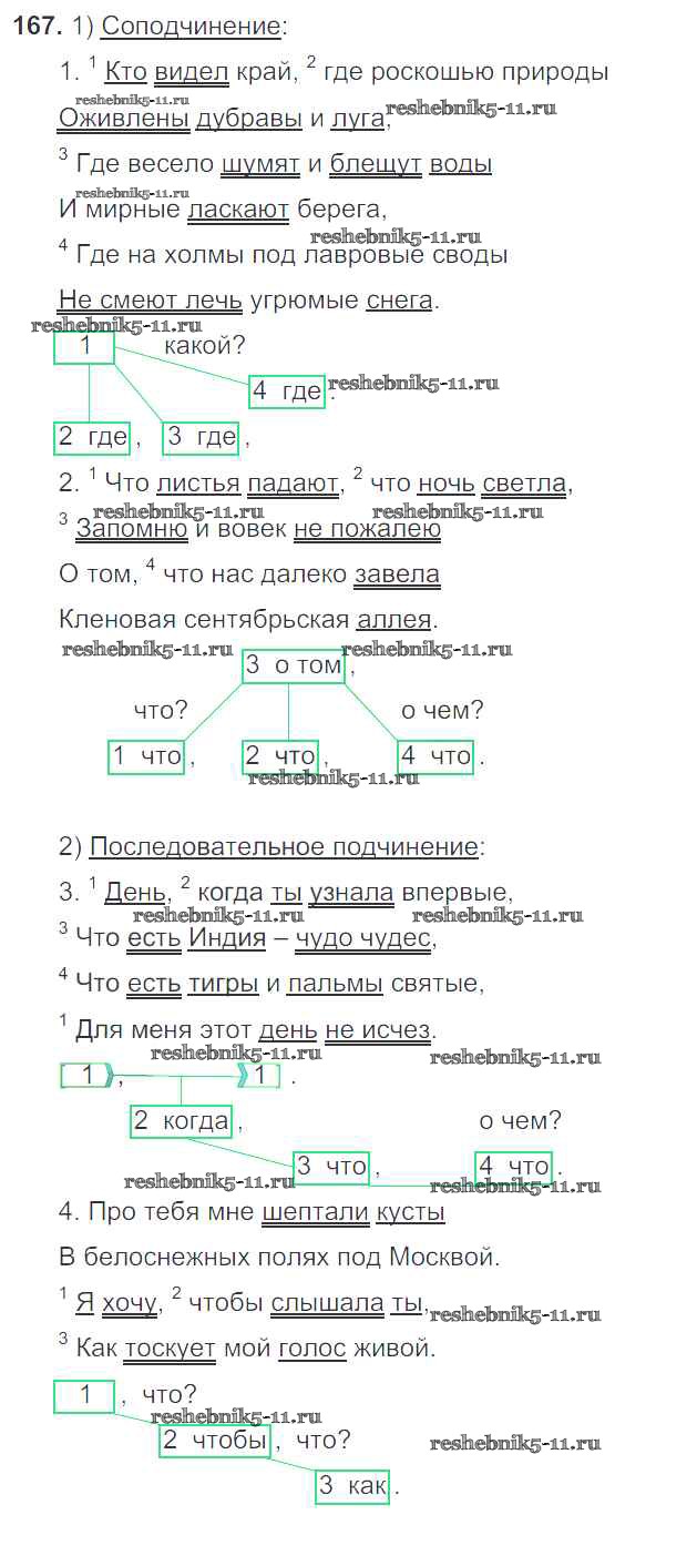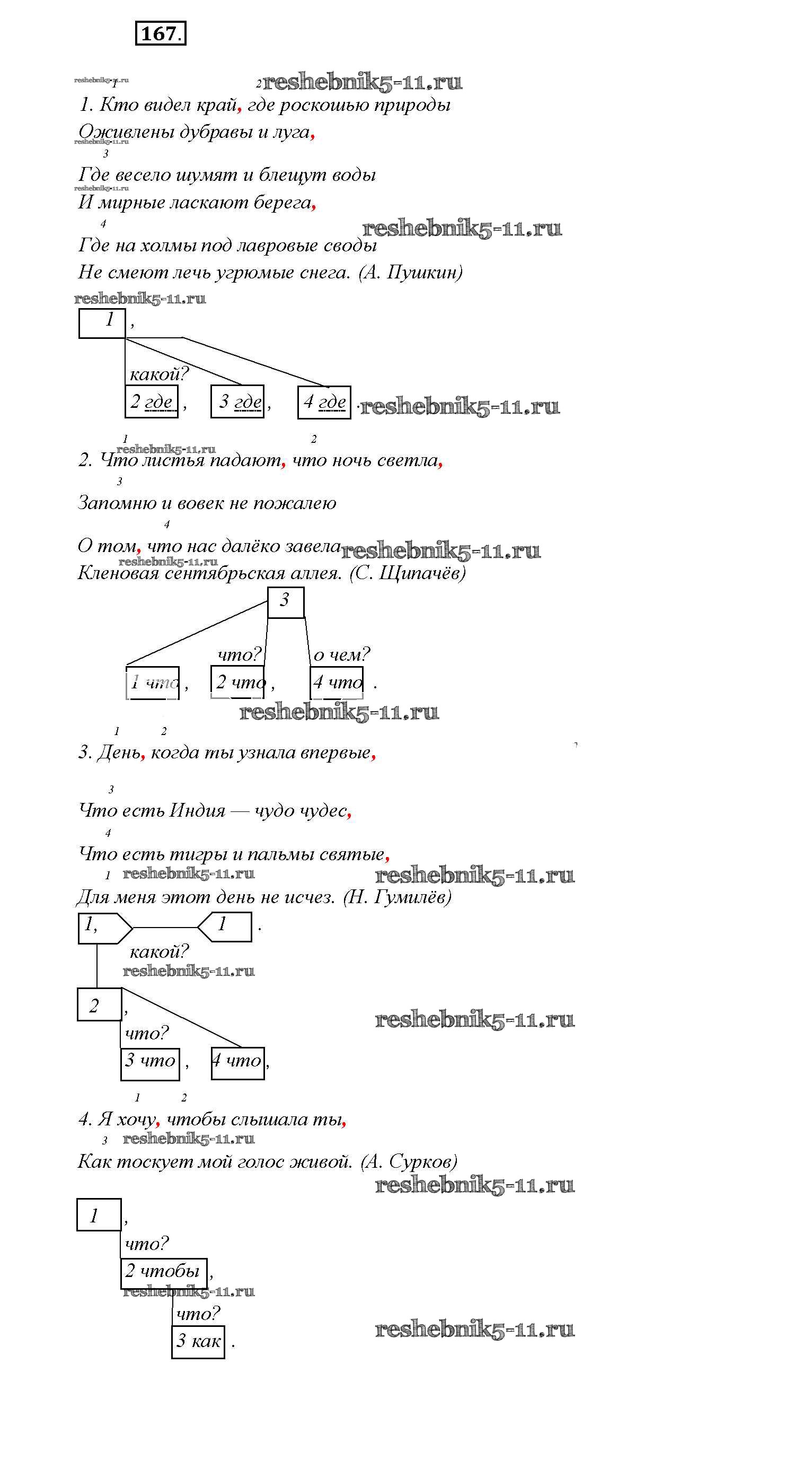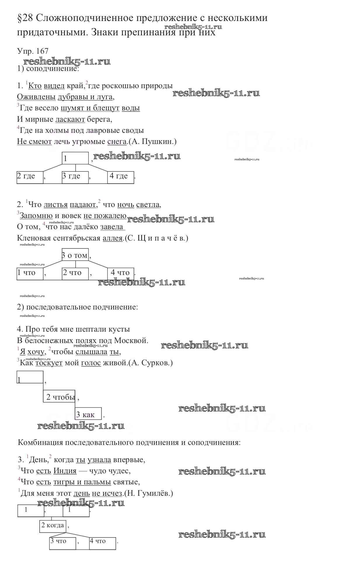 Готовая домашняя работа с ответами по Русскому языку за 9 класс Тростенцова, Ладыженская, Дейкина, Александрова Учебник Просвещение 2014 ФГОС - Упражнения 167