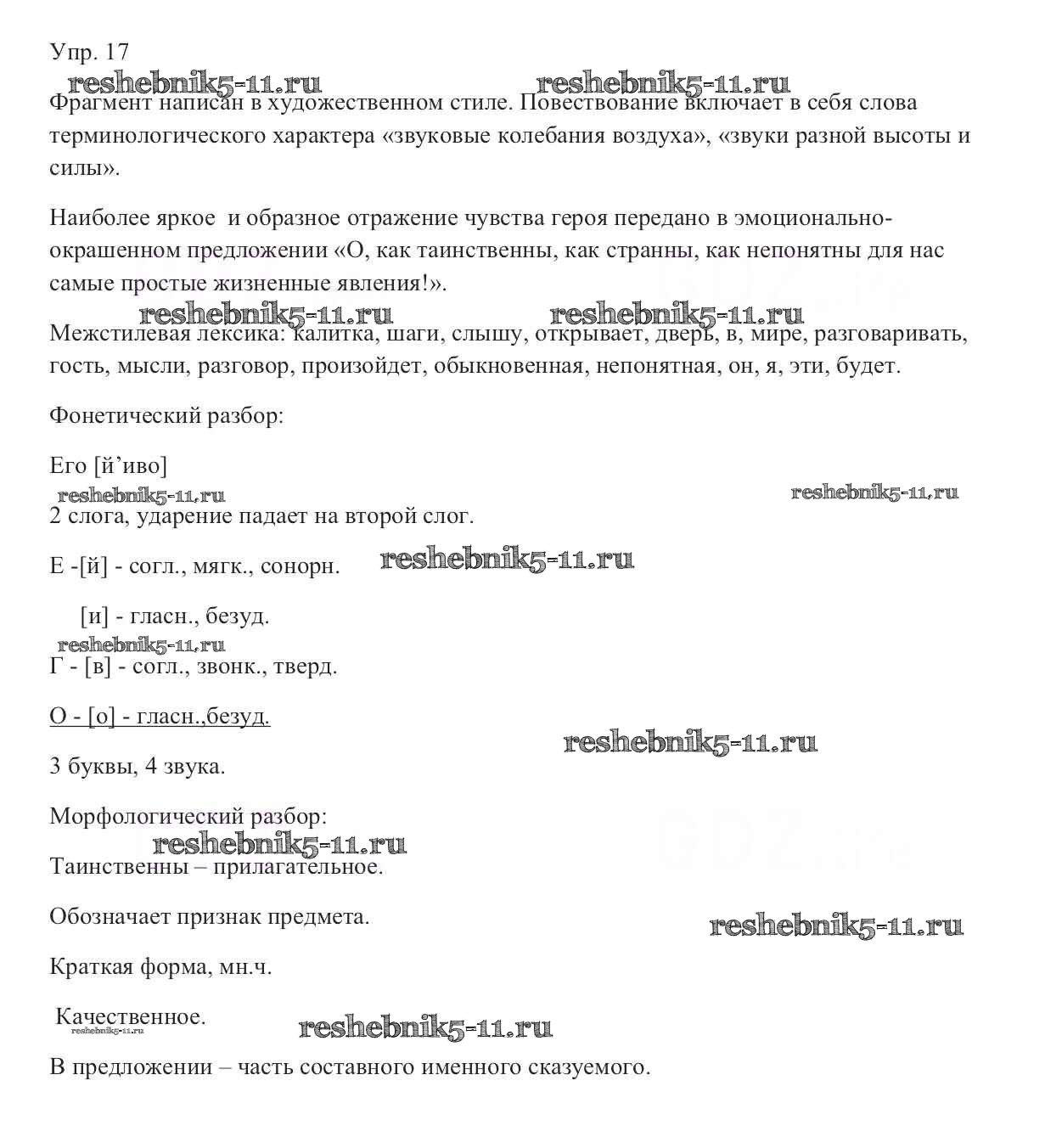Готовая домашняя работа с ответами по Русскому языку за 9 класс Тростенцова, Ладыженская, Дейкина, Александрова Учебник Просвещение 2014 ФГОС - Упражнения 17