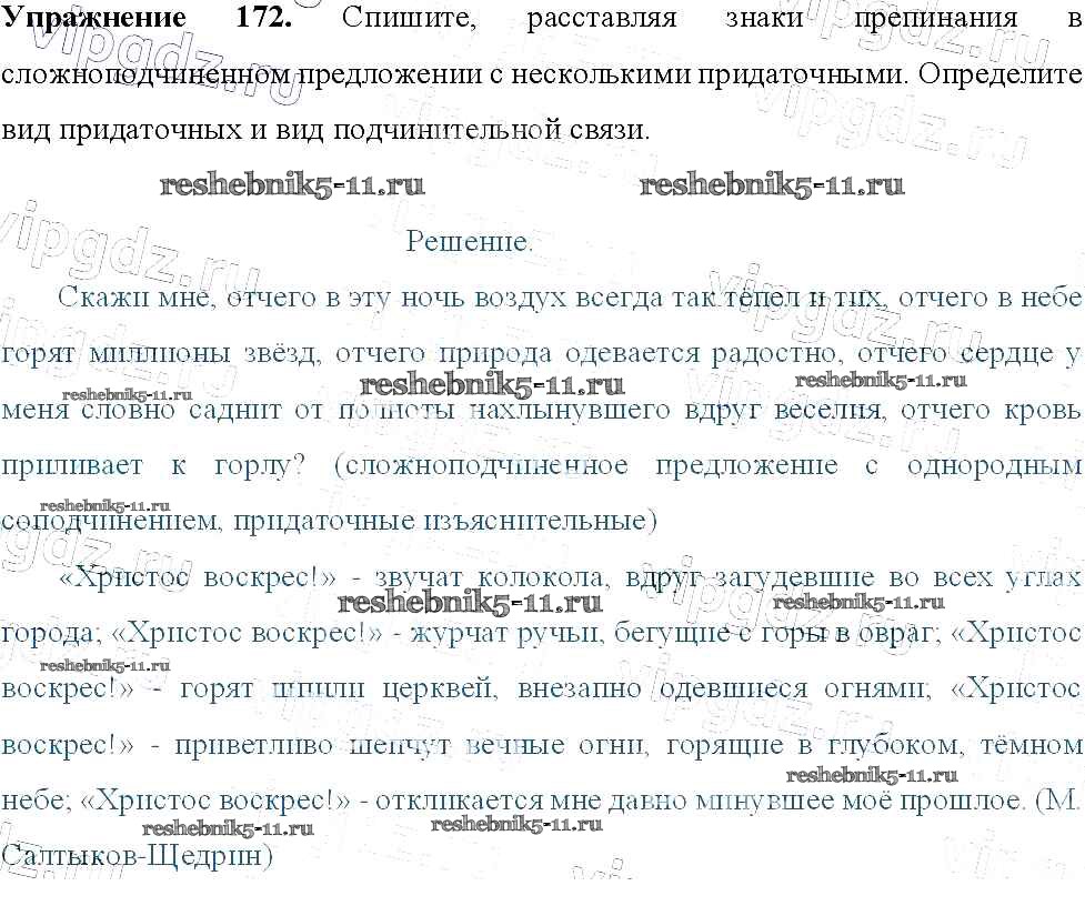 Готовая домашняя работа с ответами по Русскому языку за 9 класс Тростенцова, Ладыженская, Дейкина, Александрова Учебник Просвещение 2014 ФГОС - Упражнения 172