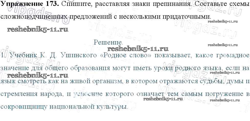 Готовая домашняя работа с ответами по Русскому языку за 9 класс Тростенцова, Ладыженская, Дейкина, Александрова Учебник Просвещение 2014 ФГОС - Упражнения 173