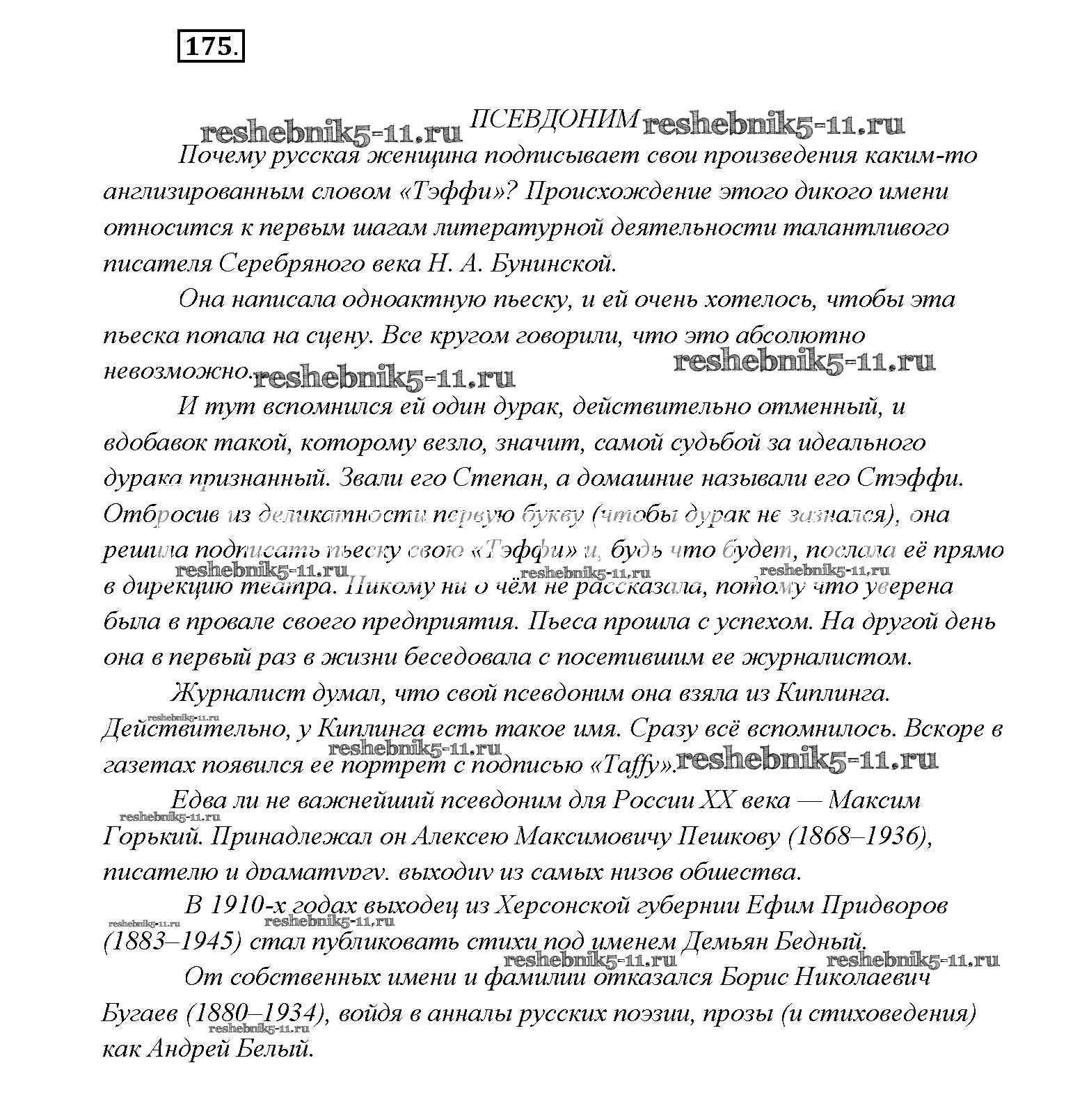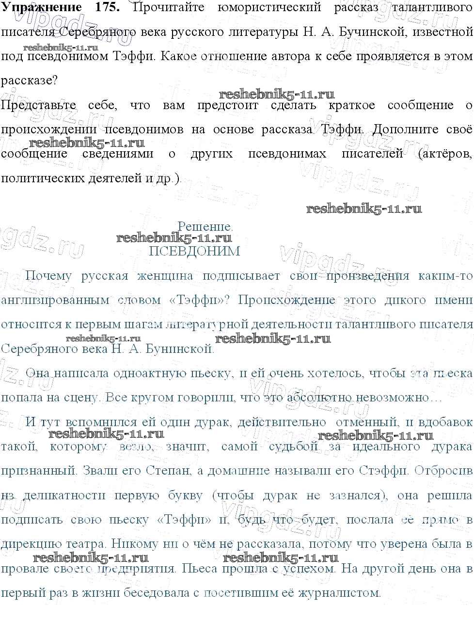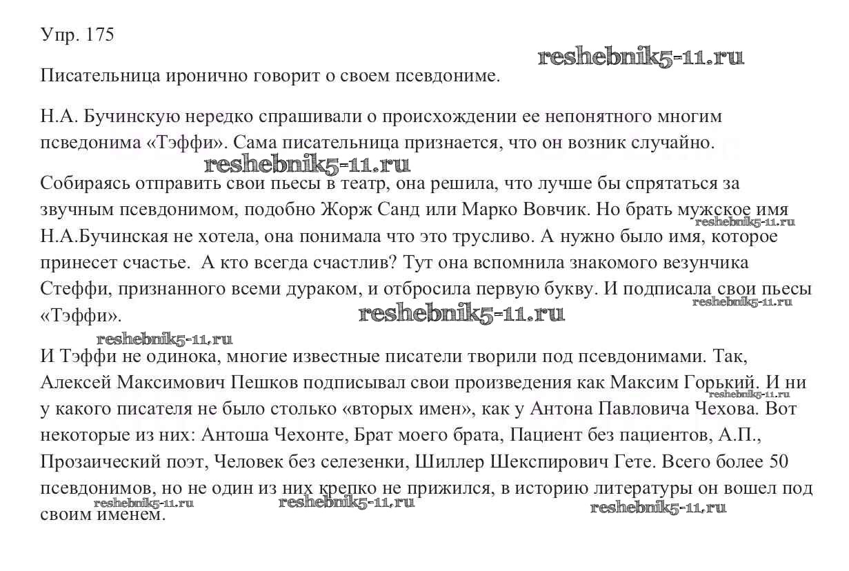 Готовая домашняя работа с ответами по Русскому языку за 9 класс Тростенцова, Ладыженская, Дейкина, Александрова Учебник Просвещение 2014 ФГОС - Упражнения 175