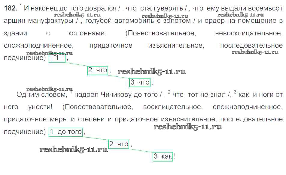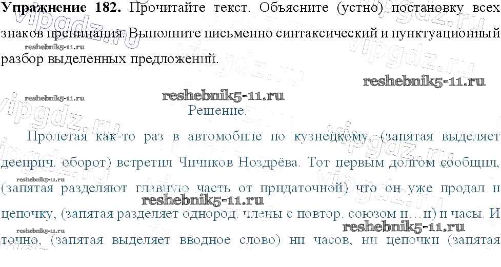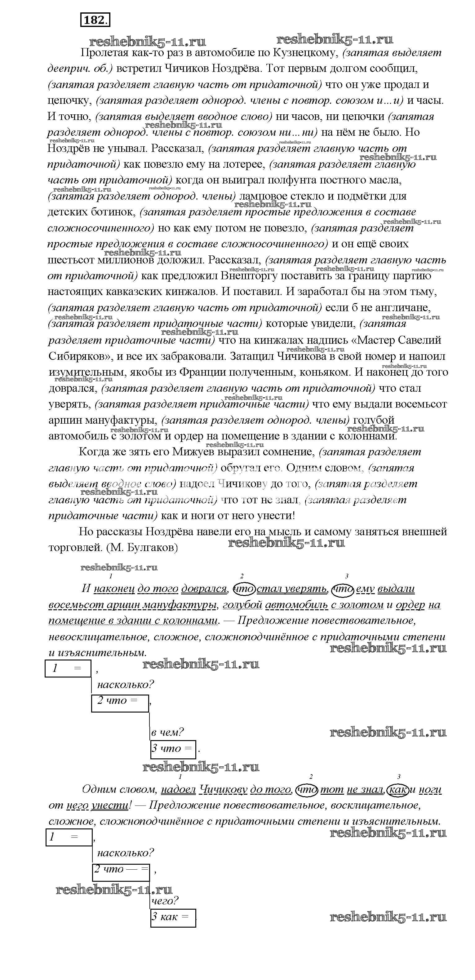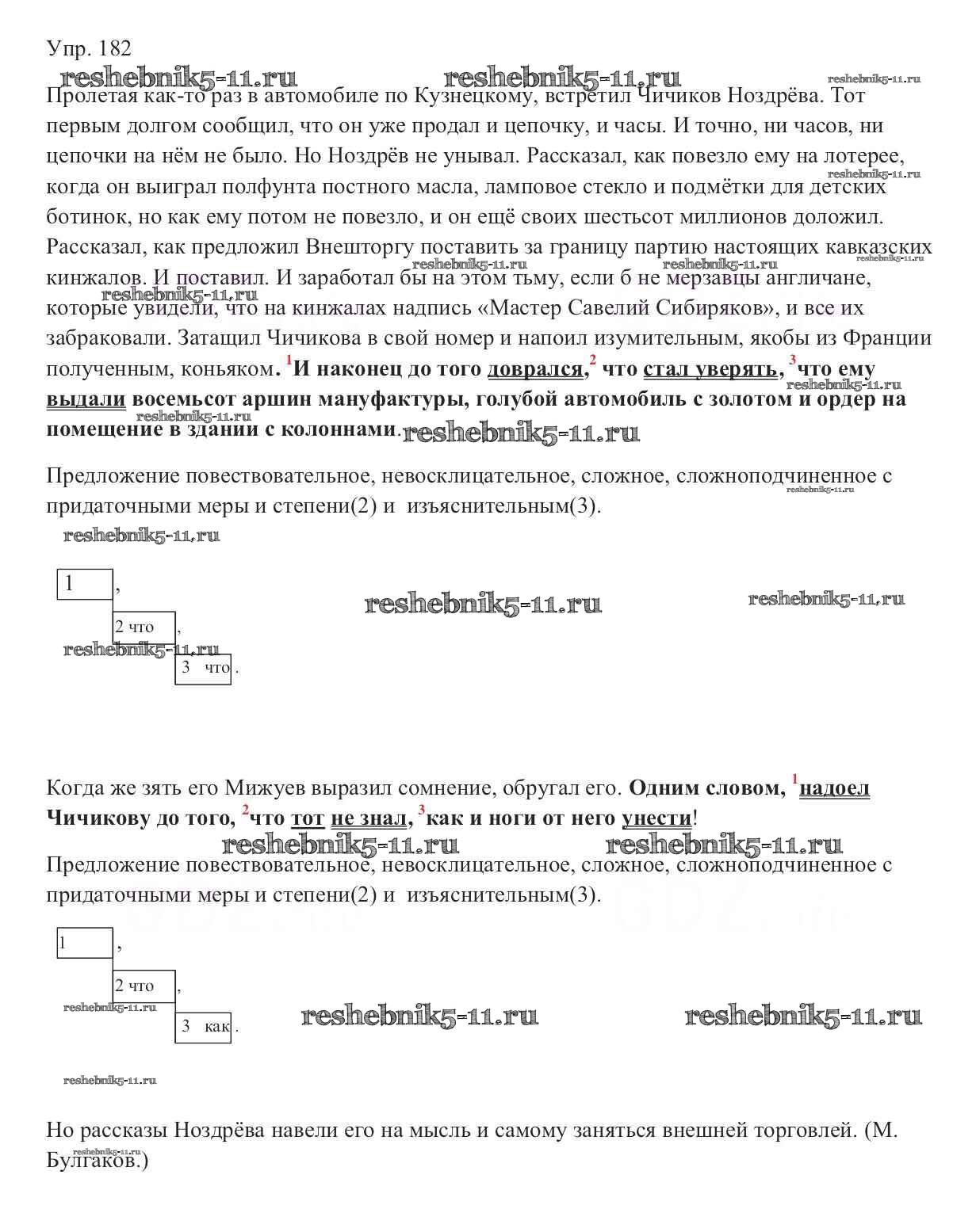 Готовая домашняя работа с ответами по Русскому языку за 9 класс Тростенцова, Ладыженская, Дейкина, Александрова Учебник Просвещение 2014 ФГОС - Упражнения 182