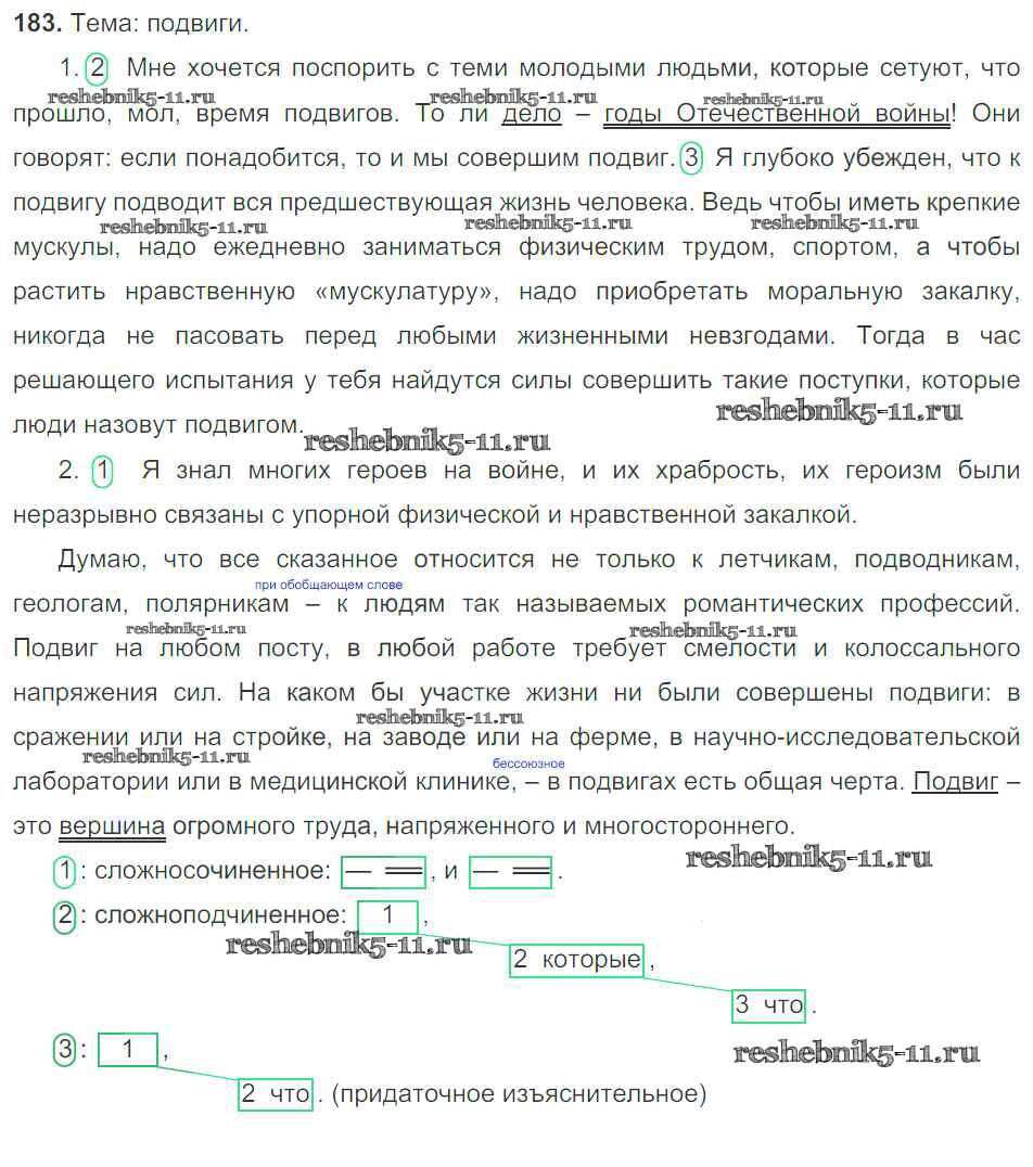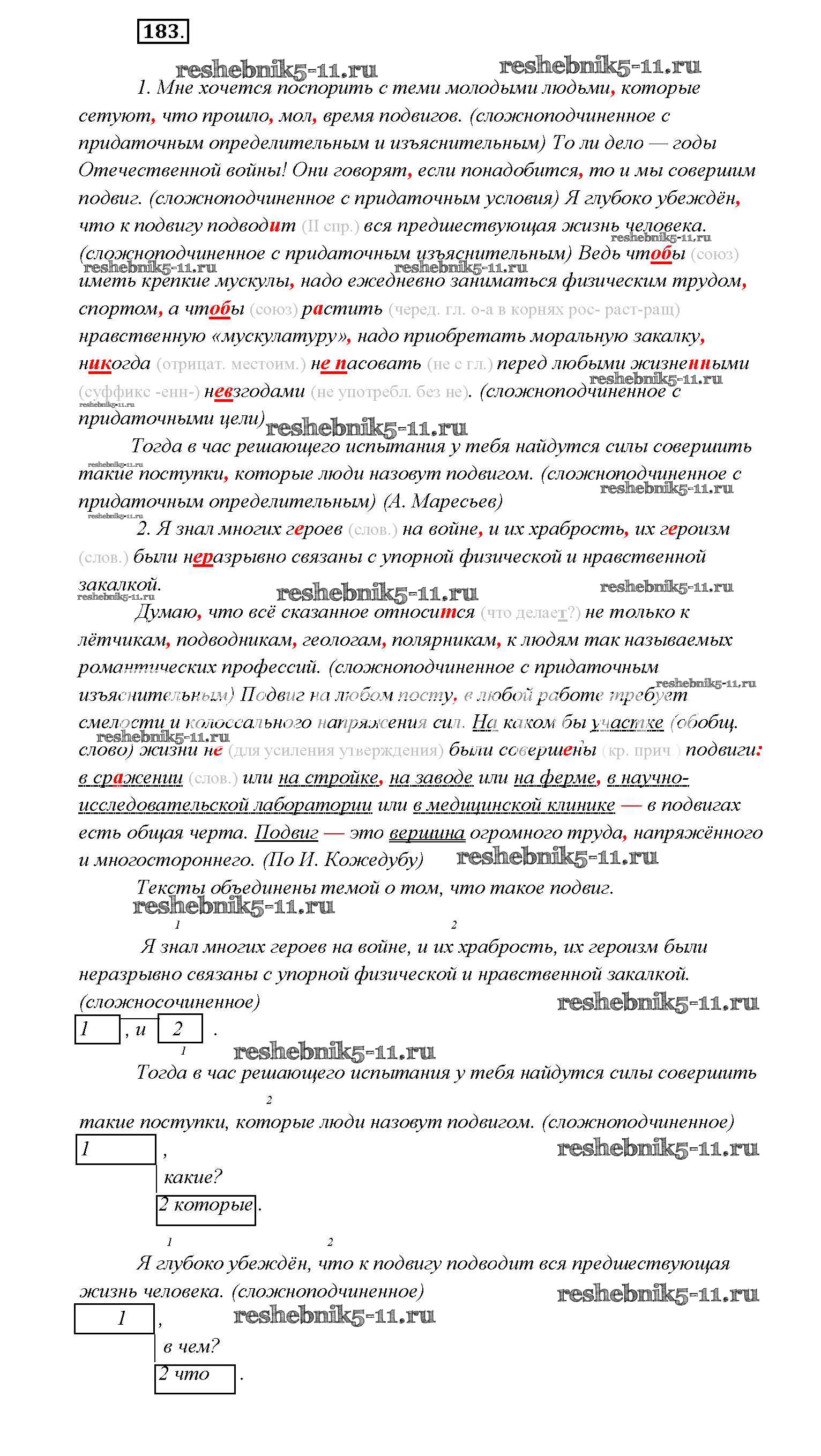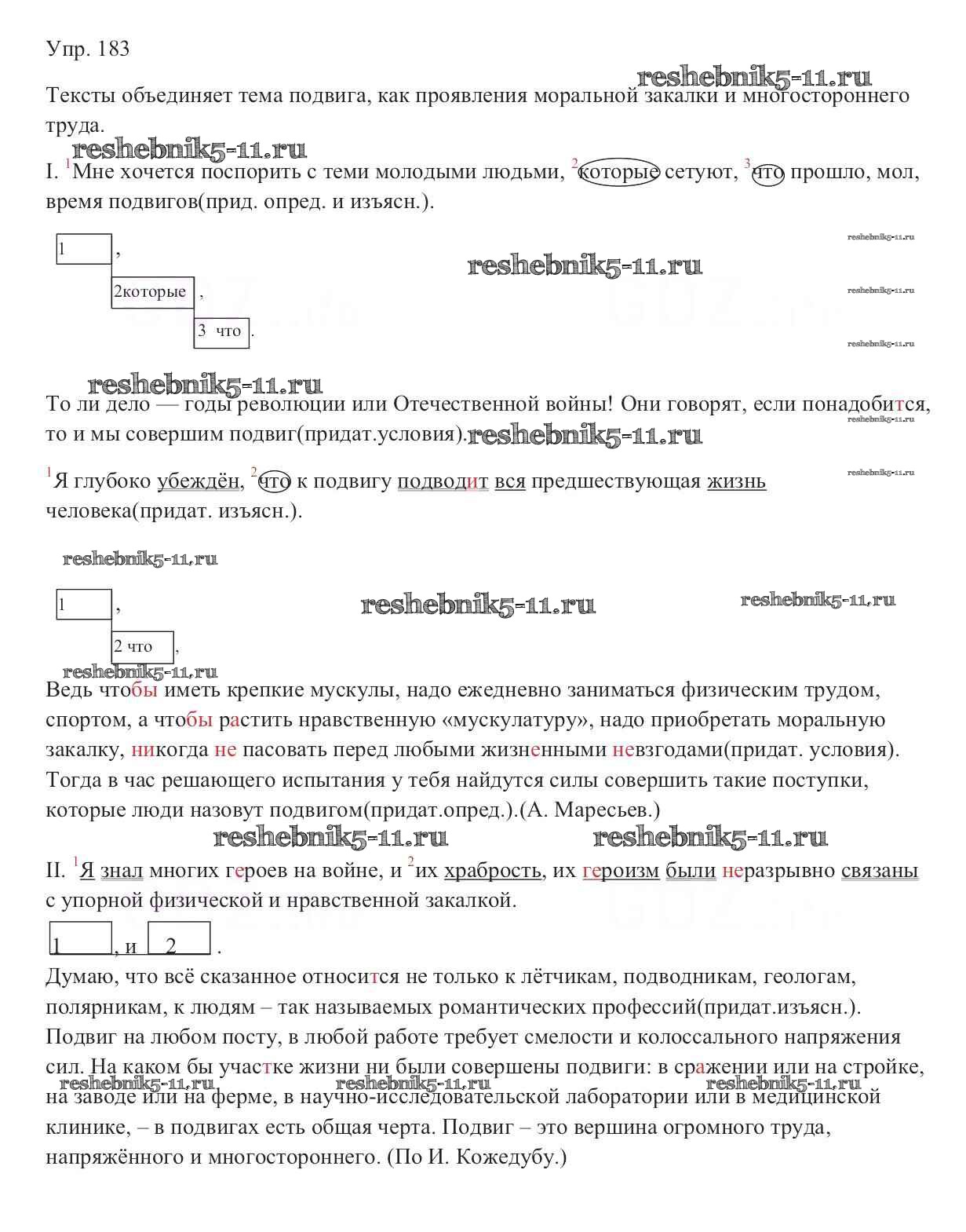 Готовая домашняя работа с ответами по Русскому языку за 9 класс Тростенцова, Ладыженская, Дейкина, Александрова Учебник Просвещение 2014 ФГОС - Упражнения 183