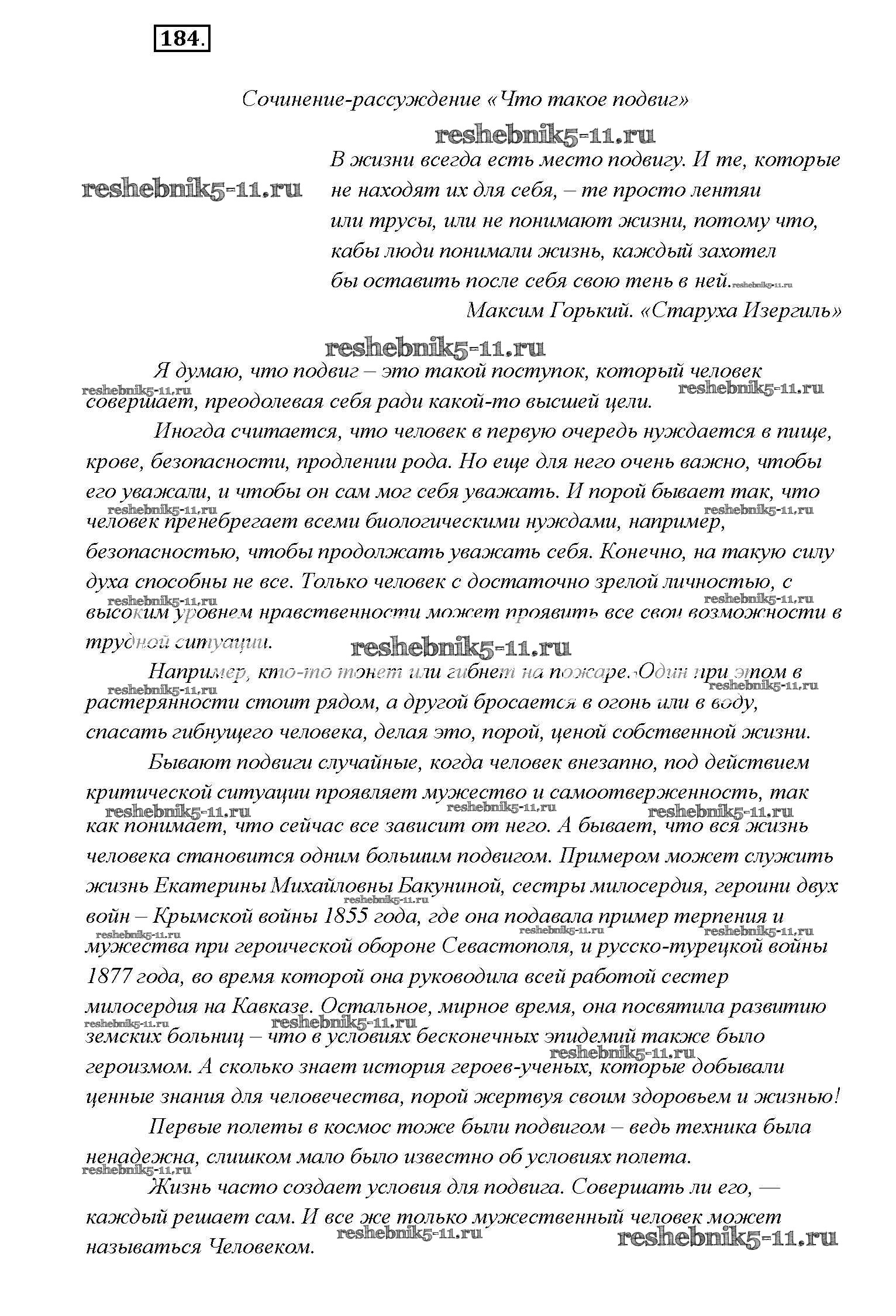 Готовая домашняя работа с ответами по Русскому языку за 9 класс Тростенцова, Ладыженская, Дейкина, Александрова Учебник Просвещение 2014 ФГОС - Упражнения 184