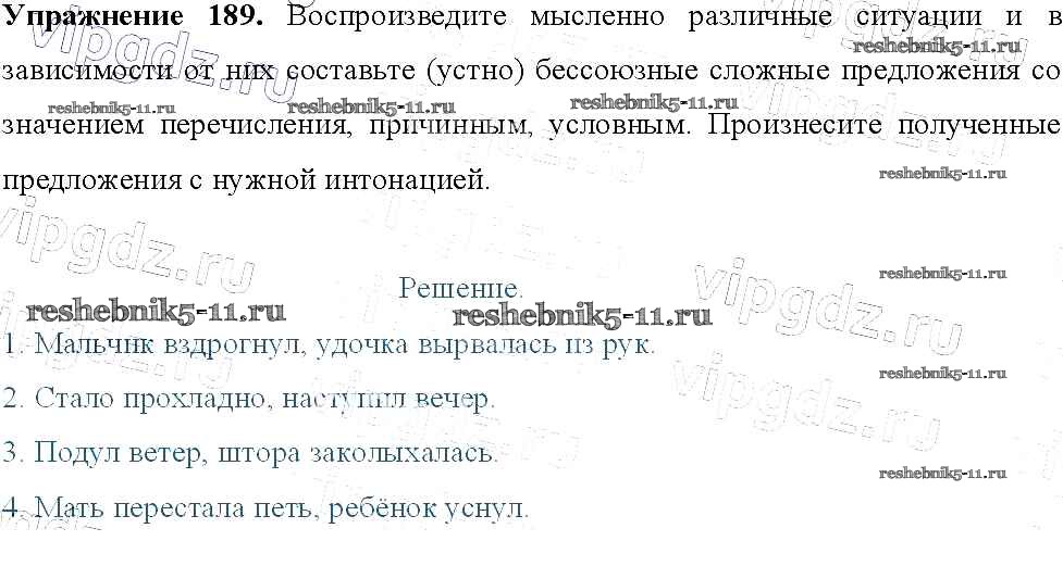 Готовая домашняя работа с ответами по Русскому языку за 9 класс Тростенцова, Ладыженская, Дейкина, Александрова Учебник Просвещение 2014 ФГОС - Упражнения 189