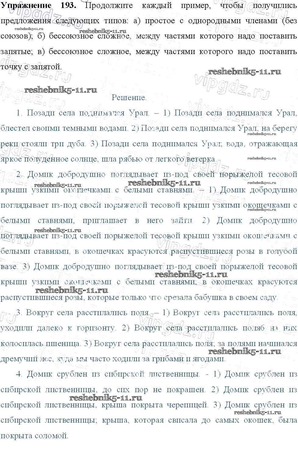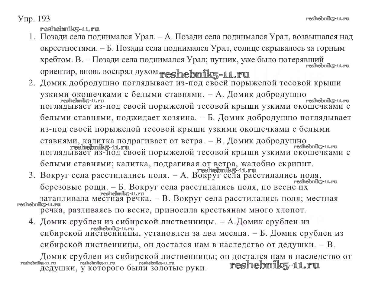 Готовая домашняя работа с ответами по Русскому языку за 9 класс Тростенцова, Ладыженская, Дейкина, Александрова Учебник Просвещение 2014 ФГОС - Упражнения 193