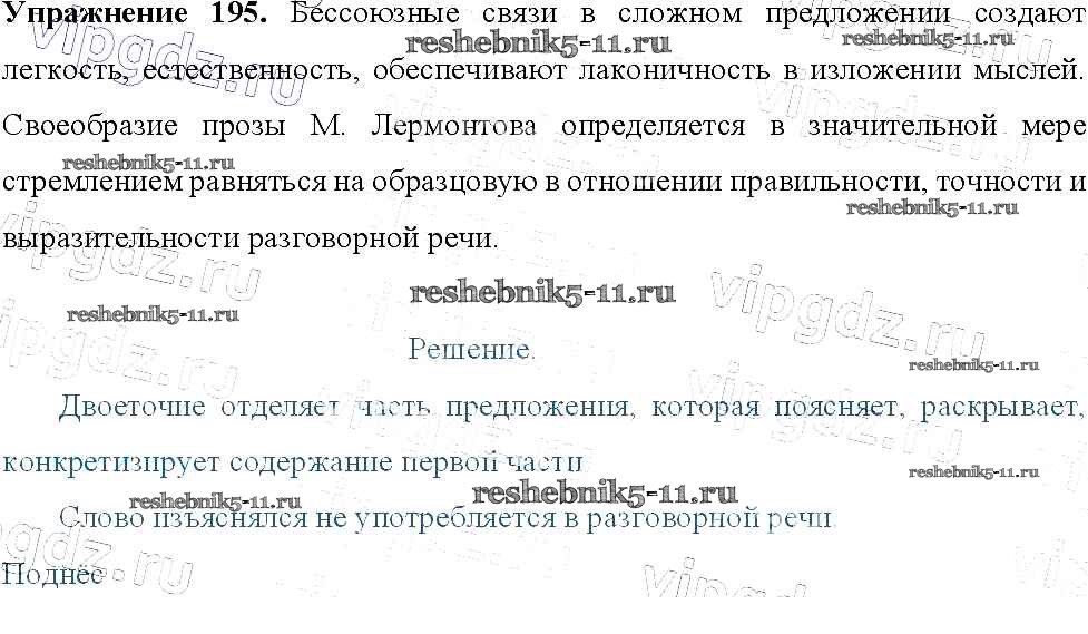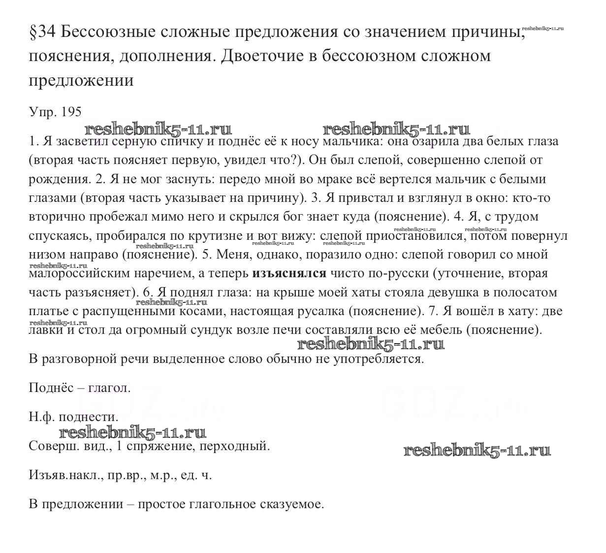 Готовая домашняя работа с ответами по Русскому языку за 9 класс Тростенцова, Ладыженская, Дейкина, Александрова Учебник Просвещение 2014 ФГОС - Упражнения 195