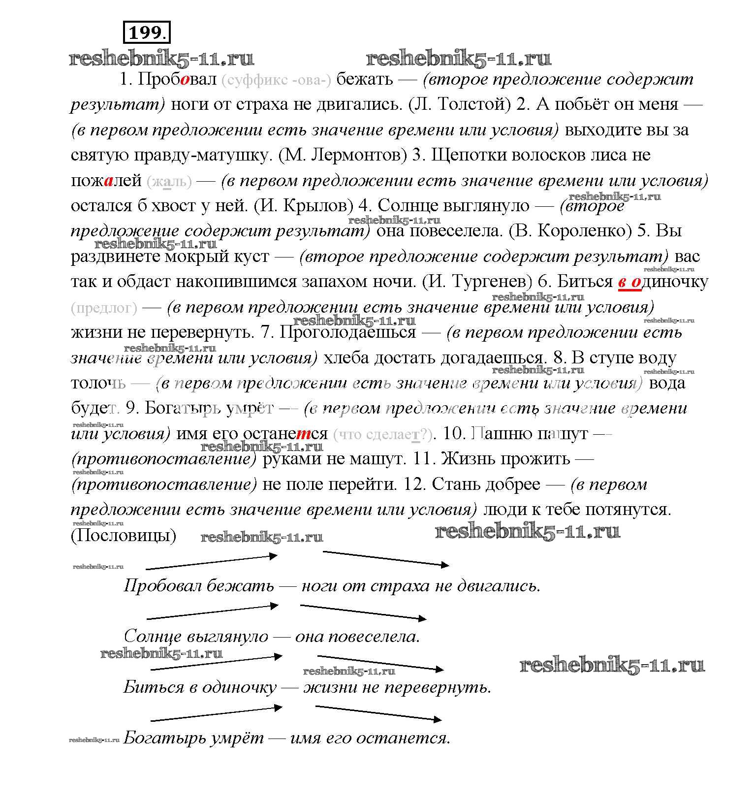 Готовая домашняя работа с ответами по Русскому языку за 9 класс Тростенцова, Ладыженская, Дейкина, Александрова Учебник Просвещение 2014 ФГОС - Упражнения 199