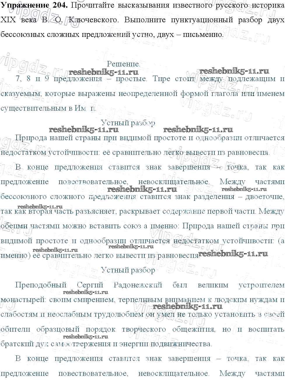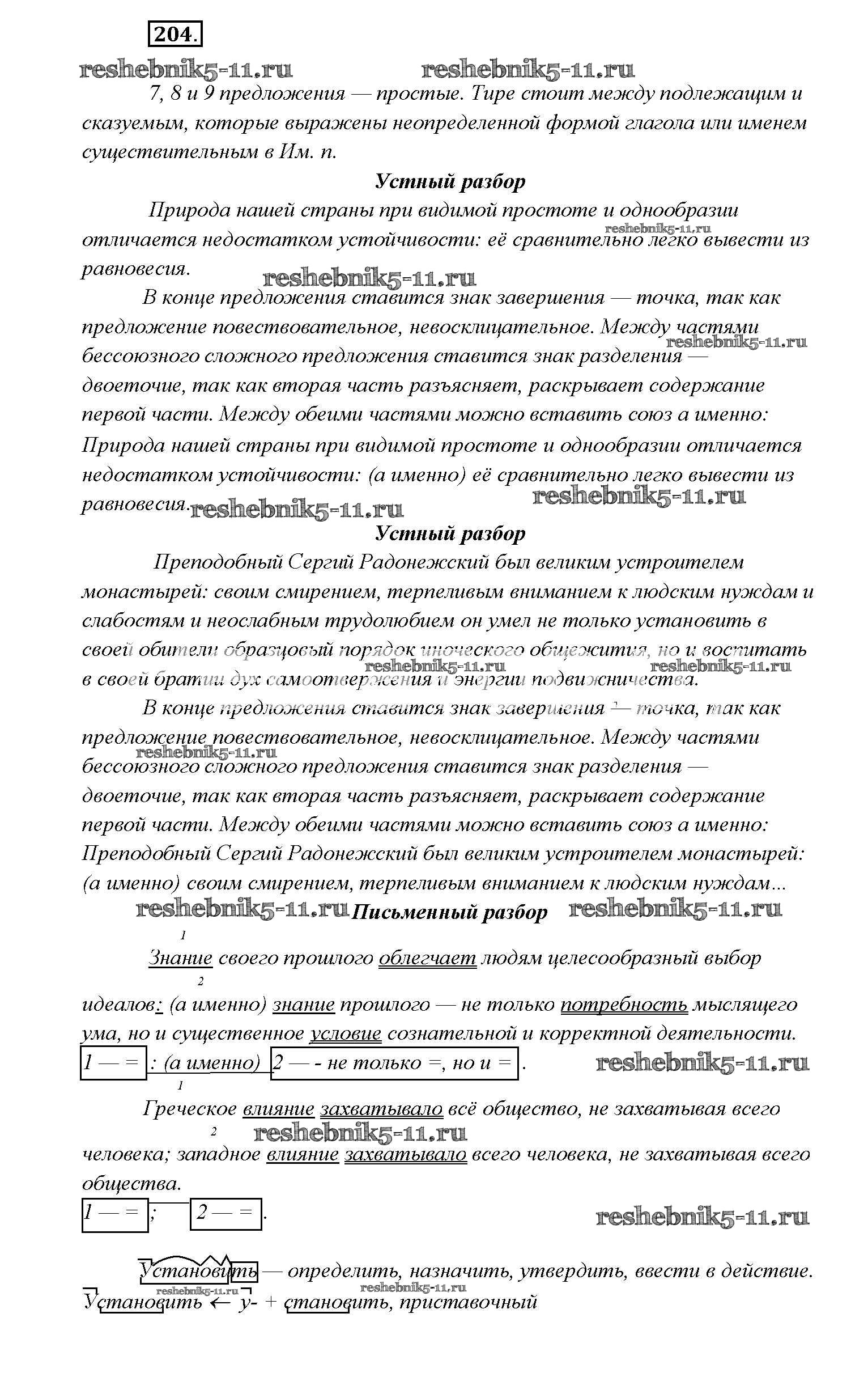 Готовая домашняя работа с ответами по Русскому языку за 9 класс Тростенцова, Ладыженская, Дейкина, Александрова Учебник Просвещение 2014 ФГОС - Упражнения 204