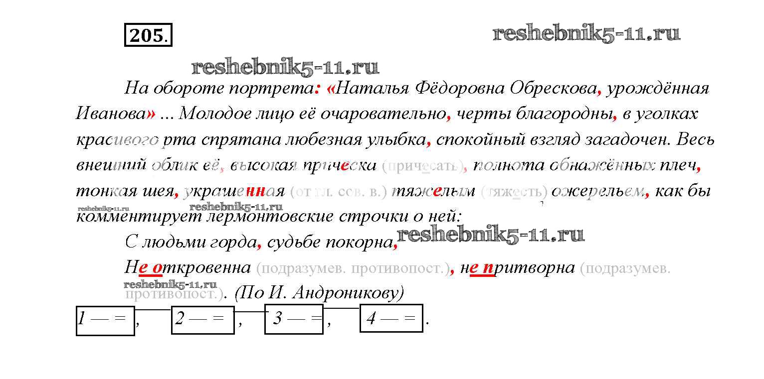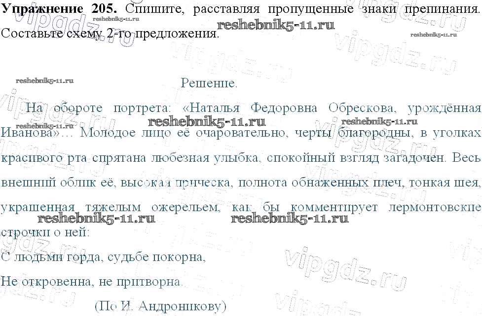 Готовая домашняя работа с ответами по Русскому языку за 9 класс Тростенцова, Ладыженская, Дейкина, Александрова Учебник Просвещение 2014 ФГОС - Упражнения 205