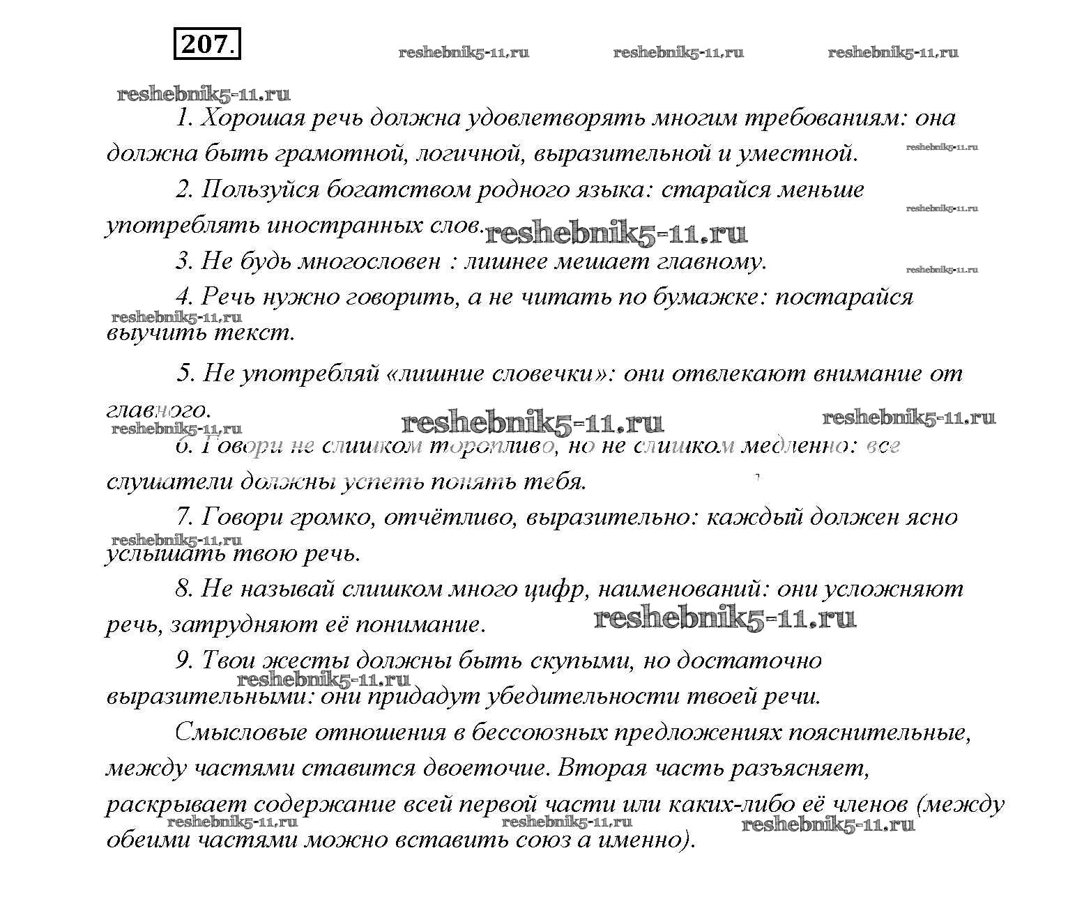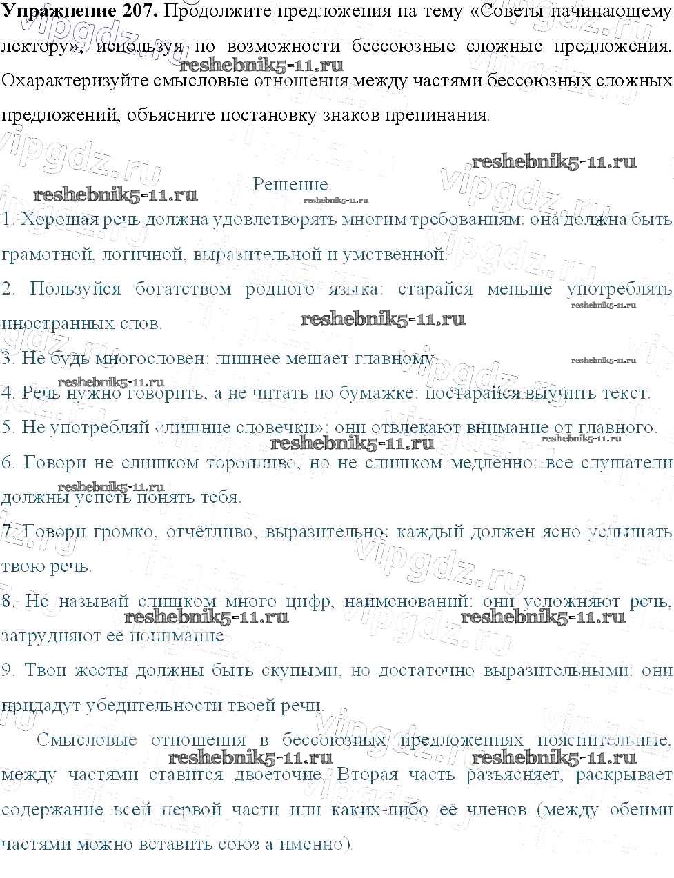 Готовая домашняя работа с ответами по Русскому языку за 9 класс Тростенцова, Ладыженская, Дейкина, Александрова Учебник Просвещение 2014 ФГОС - Упражнения 207