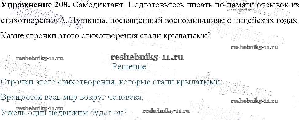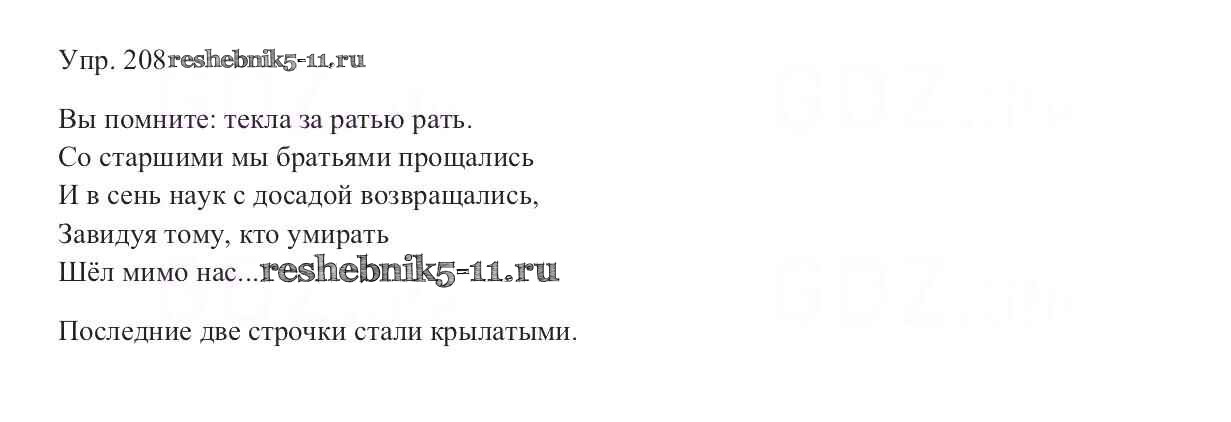 Готовая домашняя работа с ответами по Русскому языку за 9 класс Тростенцова, Ладыженская, Дейкина, Александрова Учебник Просвещение 2014 ФГОС - Упражнения 208