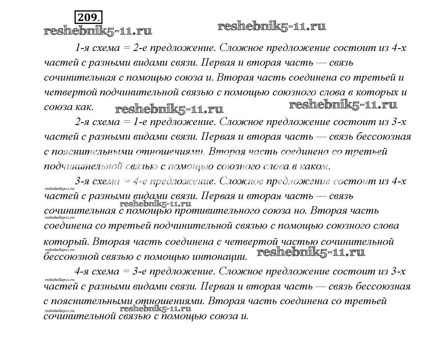 Готовая домашняя работа с ответами по Русскому языку за 9 класс Тростенцова, Ладыженская, Дейкина, Александрова Учебник Просвещение 2014 ФГОС - Упражнения 209