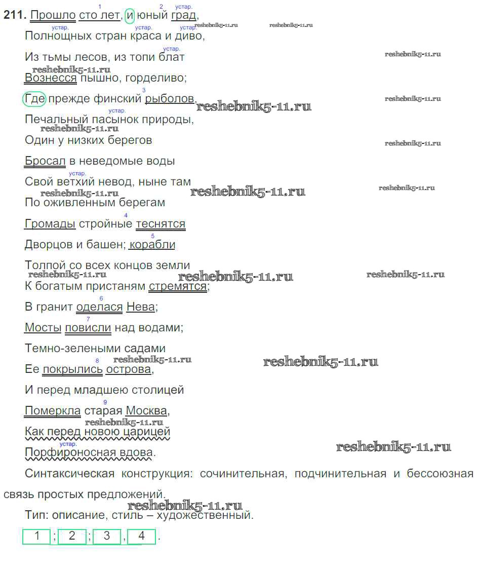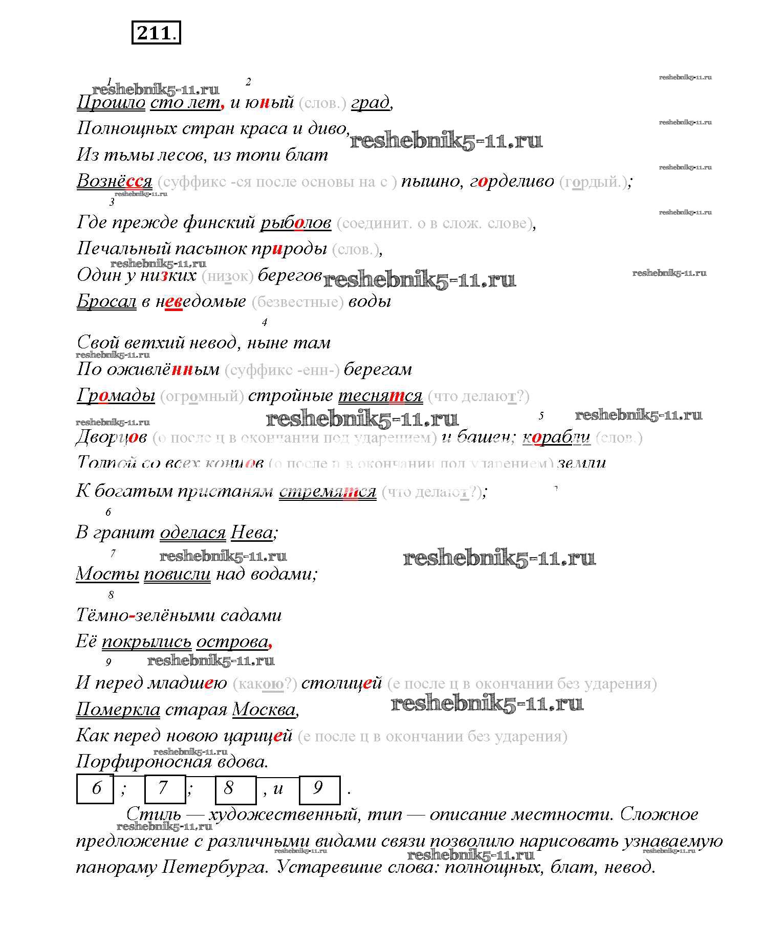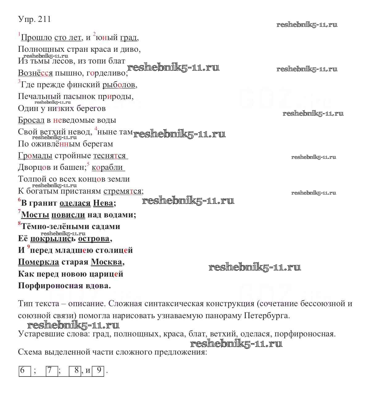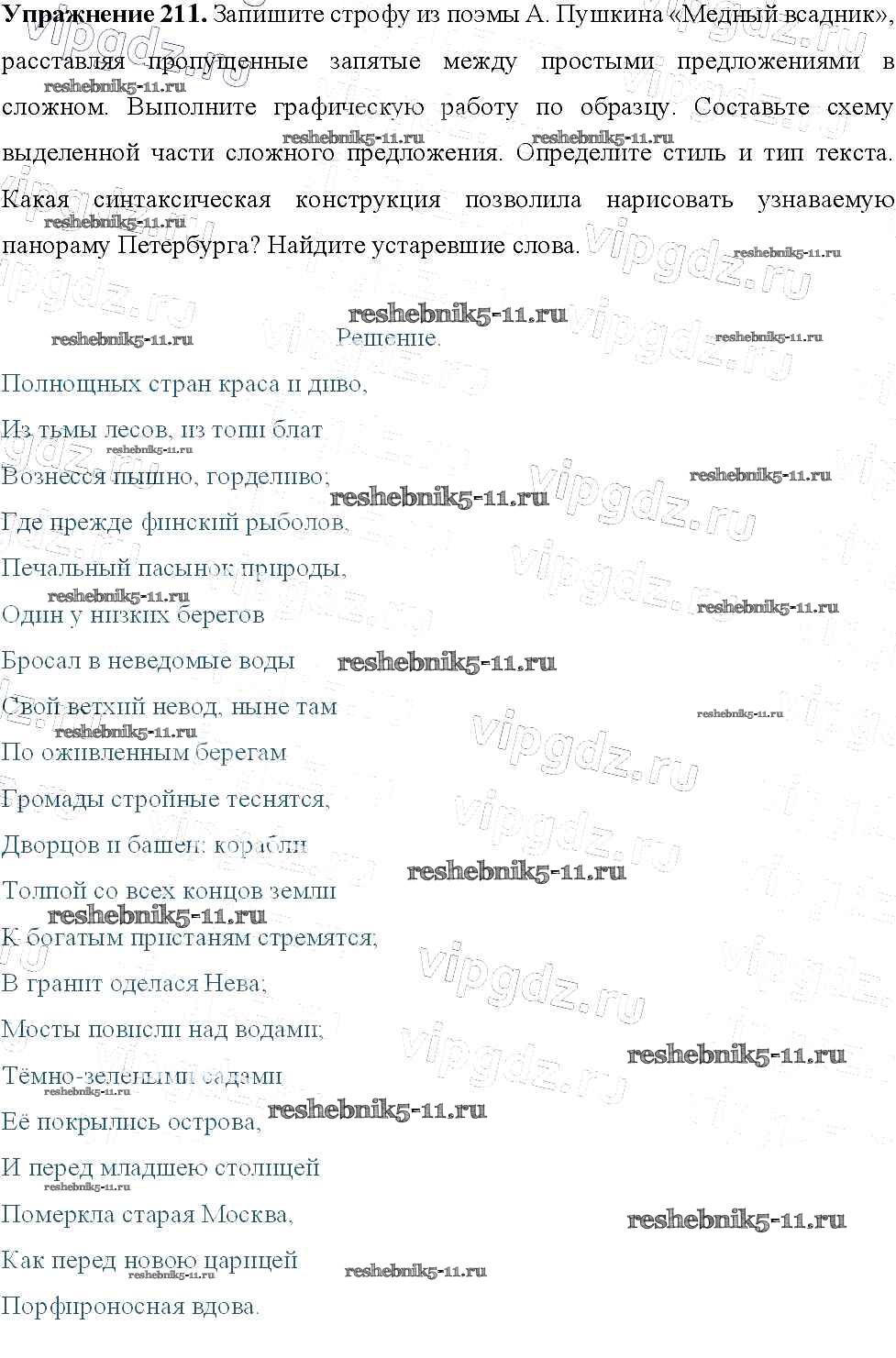 Готовая домашняя работа с ответами по Русскому языку за 9 класс Тростенцова, Ладыженская, Дейкина, Александрова Учебник Просвещение 2014 ФГОС - Упражнения 211